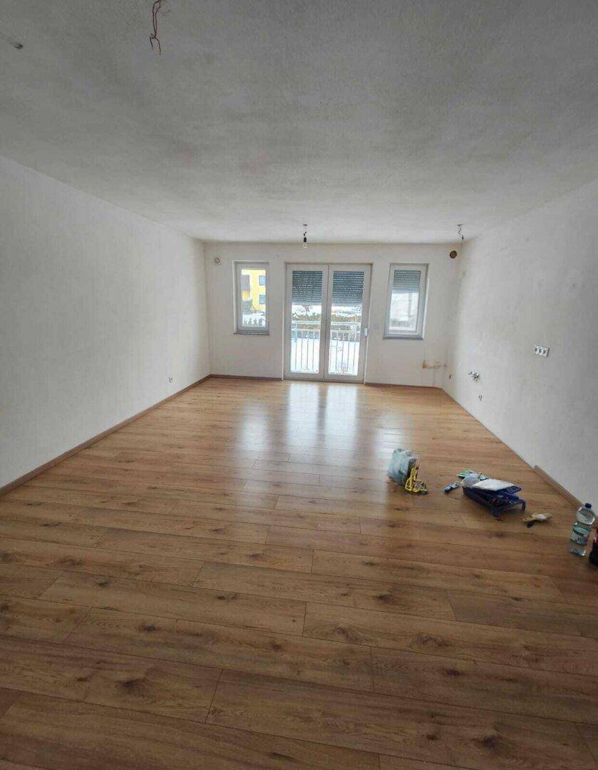 Die offene Raumgestaltung schafft ein einladendes Ambiente, das harmonisch mit den modernen Elementen der Wohnung harmoniert. Die großen Fenster sorgen für eine angenehme Lichtdurchflutung und eröffnen Ihnen einen Blick auf die malerische Umgebung von Moosbach. Hier können Sie sich in Ihren eigenen vier Wänden rundum wohlfühlen.
