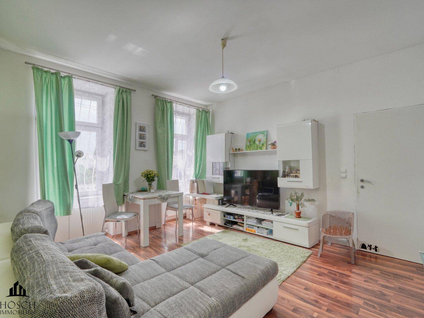 Diese Wohnung befindet sich im Erdgeschoss eines gepflegten Altbauhauses in einer ruhigen Wohngegend. Sie verfügt über ca. 49 m² Wohnfläche, die sich auf zwei Zimmer, eine Vorraum/Küche, ein Badezimmer sowie einen Abstellraum verteilen.