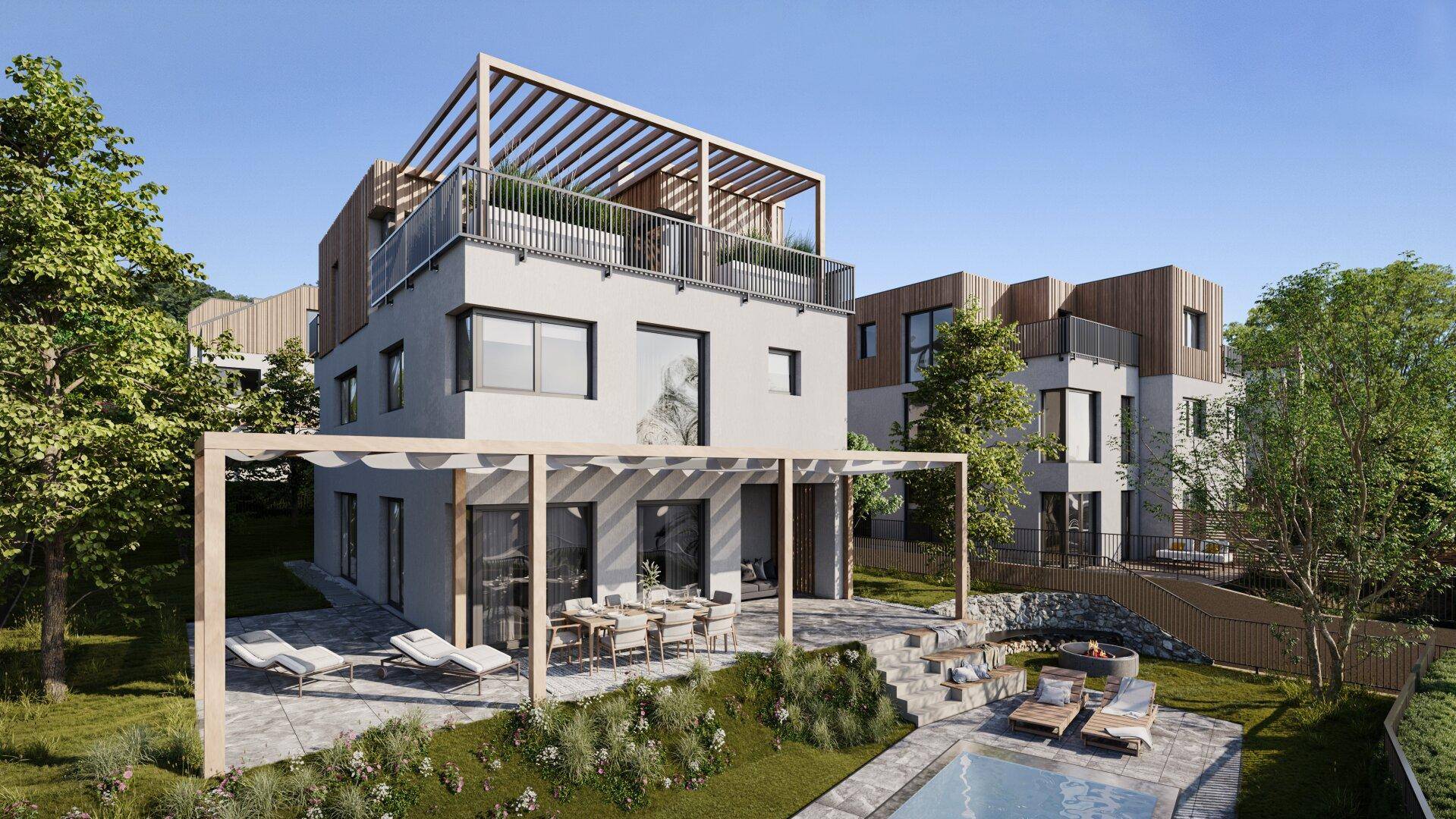 Die exklusiven Villen auf Eigengrund offerieren bis zu 274 m² Wohnfläche und weitläufige Grundstücke mit Gartenflächen von über 400 m². Die Ausstattung umfasst u. a. private Aufzüge, großzügige Dachterrassen mit Fernblick bis zur Wiener Skyline, Pooloption, luxuriöse Kellerbereiche und absolute Privatsphäre – ruhig und mit unverbaubarem Panorama.