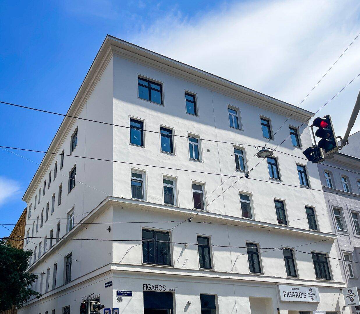 Die Wohnung liegt im Erdgeschoss (wie Hochparterre) eines Altbaus mit glatter Fassade, direkt gegenüber der U3 Station Schlachthausgasse. Sie verfügt über ein Vorzimmer, eine Küche, ein großes Zimmer sowie drei kleinere Zimmer, ein Badezimmer und einen Abstellraum. Im beigefügten Plan finden Sie einen Vorschlag, wie Sie die Wohnung durch eine Sanierung neu konzeptionieren können. Ein Austausch der Fenster und der Wohnungseingangstüren dieser Wohnung wurde beauftragt. Es werden Fenster mit Dreifachverglasung und Brandschutztüren eingebaut, die Gangfenster werden entfernt und durch Oberlichten ersetzt.