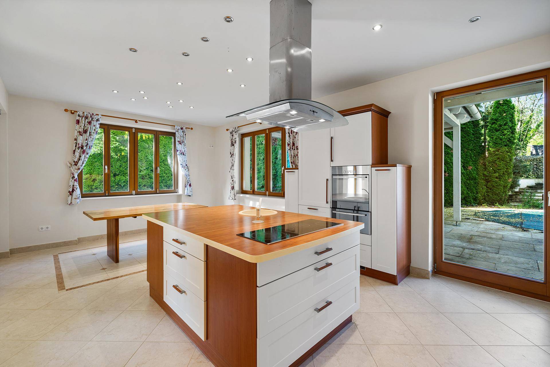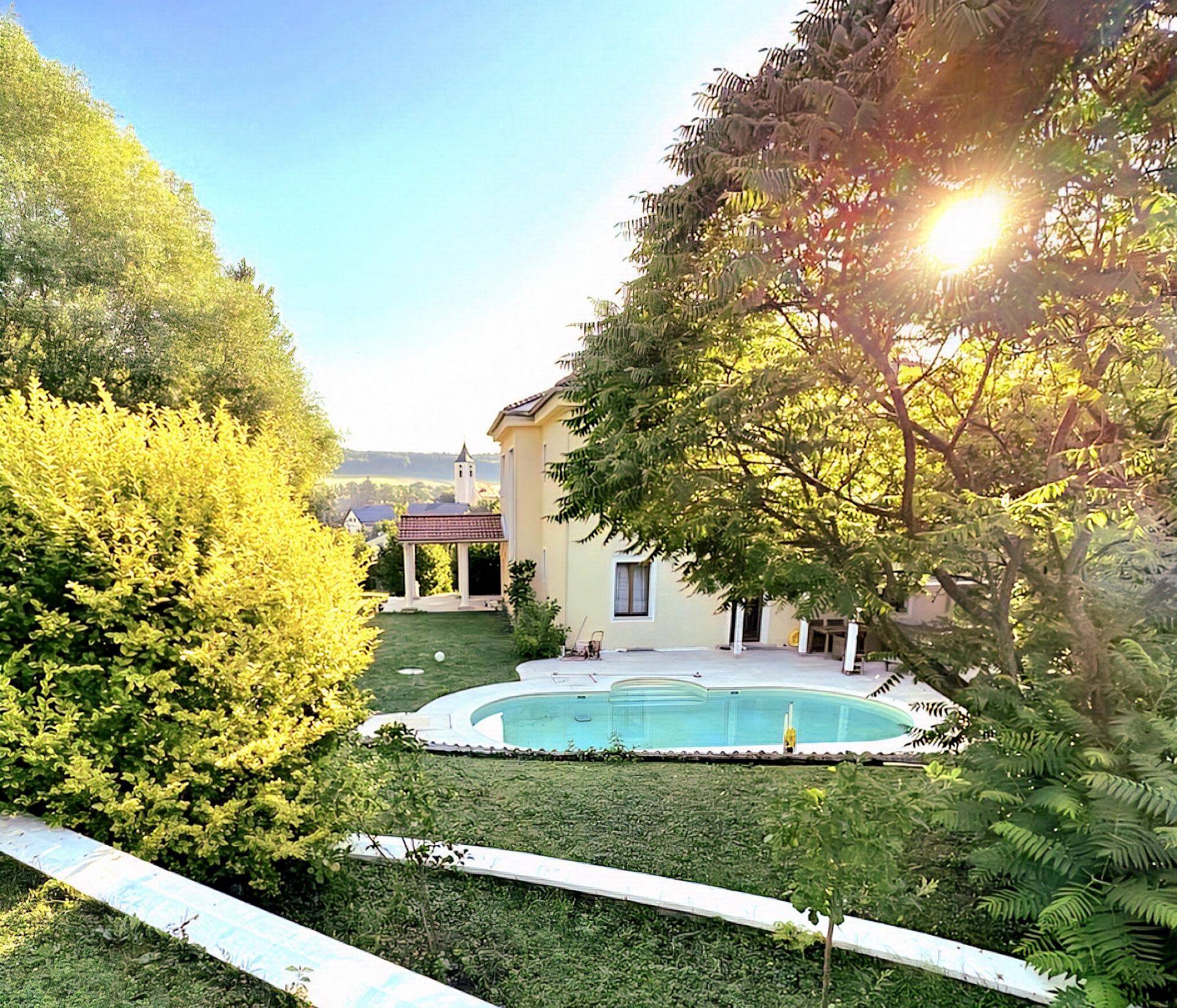 Dieses außergewöhnliche Anwesen vereint klassische Eleganz mit moderner Technik und einem Höchstmaß an Lebensqualität. Ursprünglich im Jahr 1961 errichtet, wurde die Immobilie im Rahmen einer umfassenden Sanierung im Jahr 2018 auf ein zeitgemäßes Niveau gehoben – sowohl technisch als auch ästhetisch. Mit einer großzügigen Wohnfläche von ca. 354m² sowie einem weitläufigen Grundstück von 2.149m² eröffnet dieses Haus Raum für gehobene Wohnansprüche und individuelle Nutzungskonzepte. Die insgesamt acht Zimmer bieten eine Vielfalt an Gestaltungsmöglichkeiten – sei es für großzügiges Familienleben oder Wohnen und Arbeiten unter einem Dach. Die Architektur des Gebäudes besticht durch eine durchdachte Raumaufteilung, lichtdurchflutete Flächen und große Fensterfronten, die einen traumhaften Ausblick auf das liebevoll angelegte Grundstück gewähren. Bereits beim Betreten des Hauses wird deutlich, mit welcher Sorgfalt und Liebe zum Detail hier geplant und gebaut wurde. Im Erdgeschoss eröffnet sich ein einladender Wohnbereich mit offenem Kamin, der harmonisch in den Wintergarten übergeht. Eine moderne, funktional ausgestattete Küche mit zentraler Kochinsel und zwei Gästezimmer runden das Angebot im Erdgeschoss ab. Im Obergeschoss stehen mehrere vielseitig nutzbare Räume zur Verfügung, darunter ein beeindruckender Masterbedroom mit begehbarem Kleiderschrank. Die hier angebotene Immobilie ist mit einer innovativen Ochsner Wärmepumpe ausgestattet, die nicht nur für effiziente Wärme sorgt, sondern an heißen Tagen auch als Kühlsystem fungiert – eine perfekte Lösung für komfortables Wohnen zu jeder Jahreszeit. Ein besonderes Highlight dieses Immobilienangebots ist die Gestaltung der Außenanlagen. Die Einfahrt mit Rondeau und Zierbrunnen setzt bereits beim Ankommen ein eindrucksvolles Statement. Der liebevoll gestaltete Garten und die große Terrasse bieten ausreichend Platz für Gartenfeste mit Freunden und Verwandten, entspannte Sommerabende oder einfach das Genießen der Natur. Zur exklusiven Ausstattung dieser Liegenschaft gehört außerdem ein beheizter Außenpool, welches ebenfalls mit moderner Wärmepumpentechnik betrieben wird. Das Angebot wird durch eine große Garage für zwei bis drei Autos, von der Sie im Trockenen das Haus betreten können, und einem großzügigen Keller abgerundet. Lassen Sie sich bei einer Besichtigung von den Vorzügen dieses stilvollen Hauses begeistern.