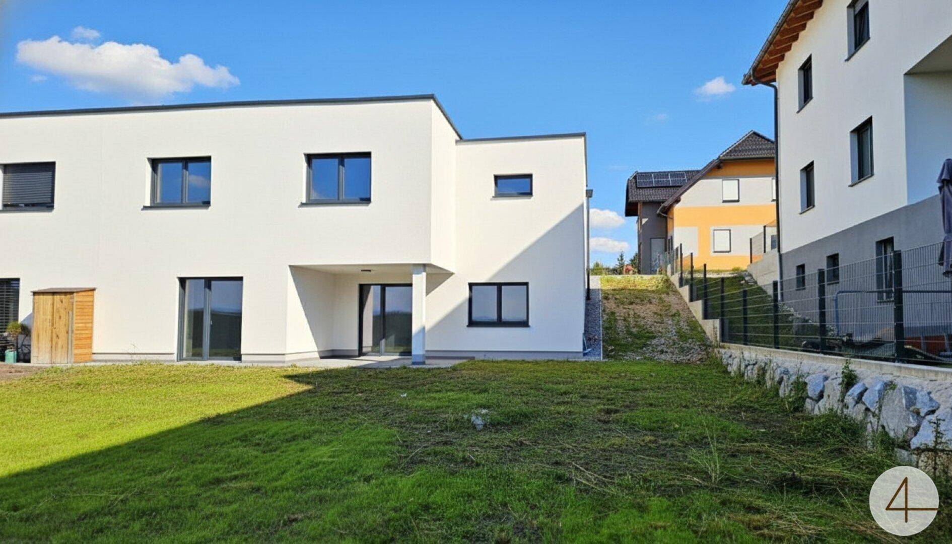 Im Erdgeschoss erwarten Sie ein einladender Vorraum, ein Badezimmer, ein separates WC, ein Schlafzimmer sowie zwei Kinderzimmer, die vielfältig nutzbar sind – etwa als Gäste- oder Arbeitsräume. Eine Garage mit direktem Zugang bietet zusätzlichen Komfort und Stauraum.