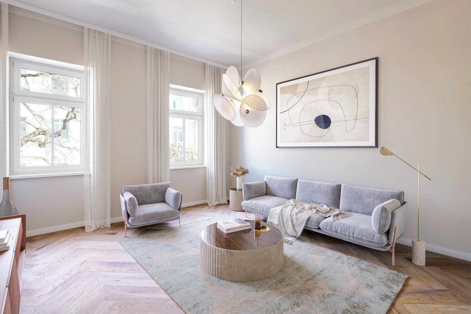 Zum Verkauf gelangt diese wunderschöne, generalsanierte, ca. 68,39 m² große 2-Zimmer Altbauwohnung im 1. Obergeschoss , in sehr guter Lage des 13. Wiener Gemeindebezirks.