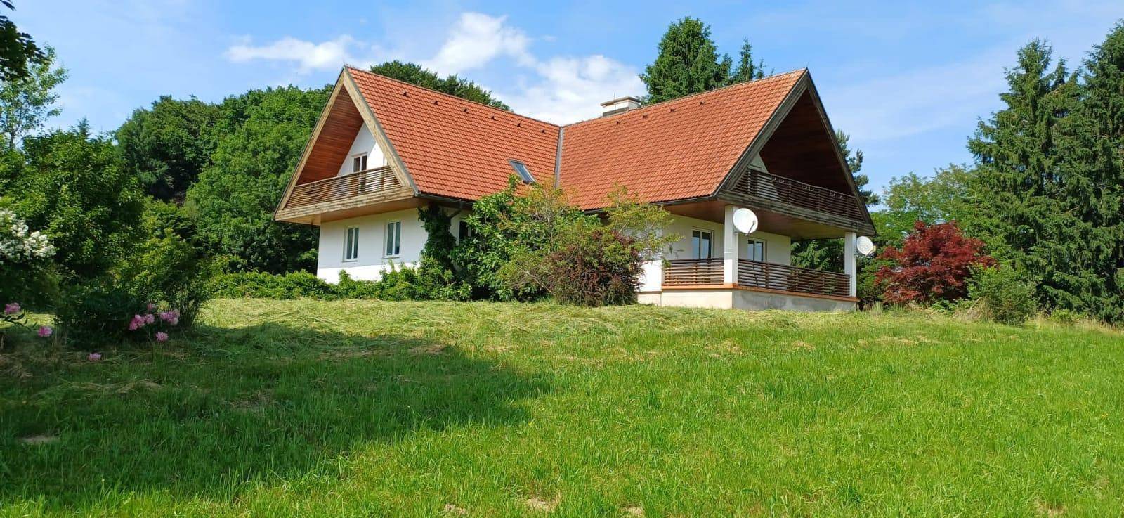 Am Waldrand am Südhang mit fantastischer Fernsicht steht die Villa unserer Familie aus den 80er Jahren.