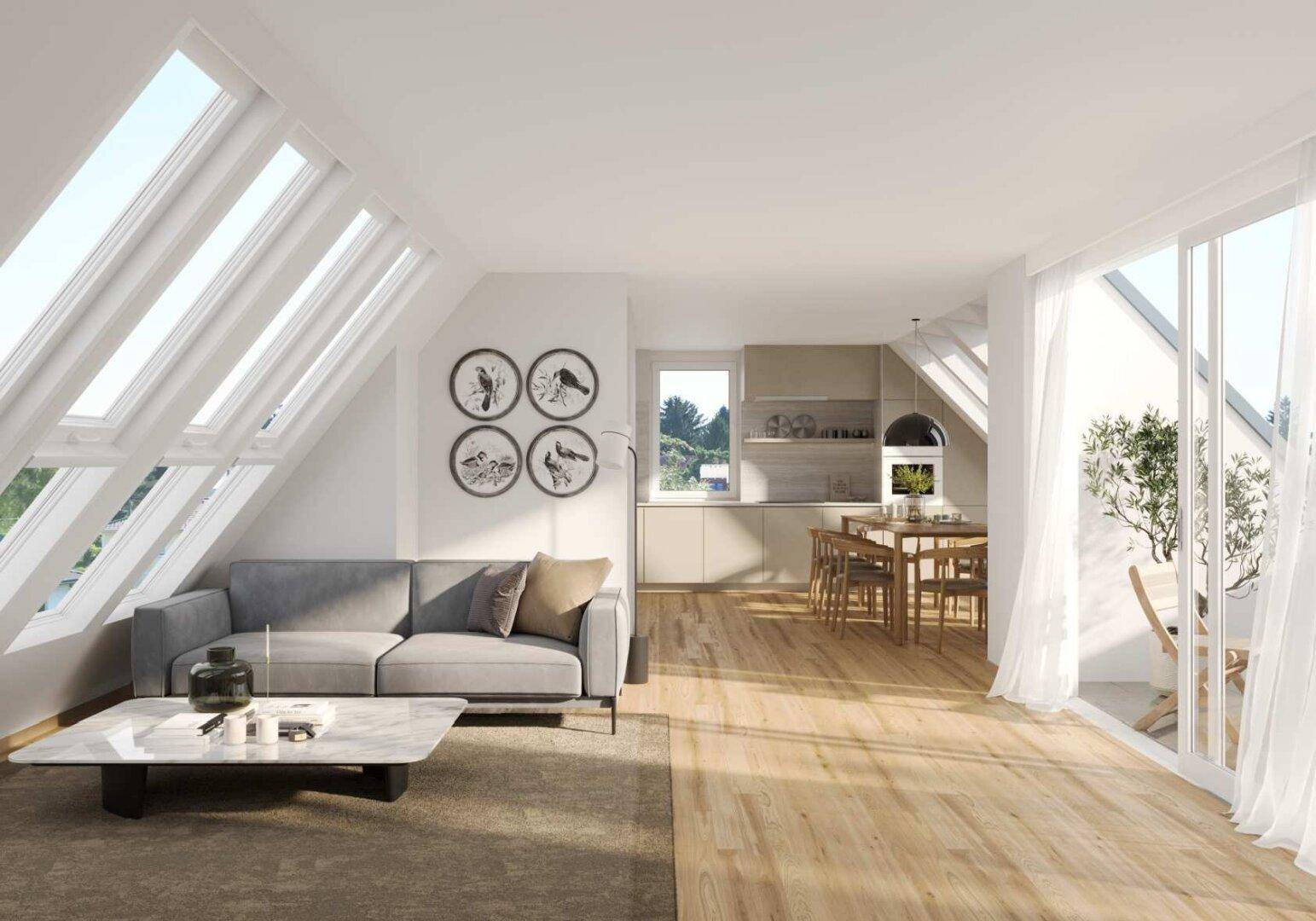 Die 4-Zimmer-Wohnung mit einer Wohnfläche von ca. 77,56 m² (zzgl. 0,91 m² mit Raumhöhe unter 1,50 m) befindet sich im 1. Dachgeschoss und verfügt über zwei großzügige Außenflächen. Die durchdachte Raumaufteilung eignet sich ideal für Familien oder anspruchsvolle Eigennutzer.