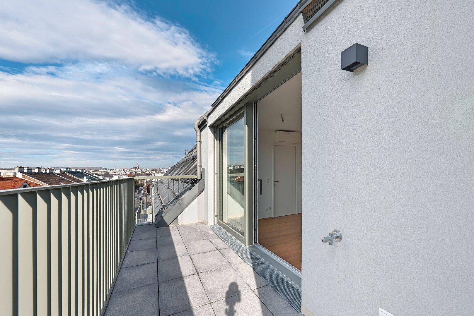 Die modernen Wohneinheiten sind mit Parkett und Fußbodenheizung ausgestattet. Das sorgt nicht nur für warme Füße, auch die Energiekosten können dank Fernwärme gesenkt werden. Außenliegender, elektrisch gesteuerter Sonnenschutz und Klimaanlagen im Dachgeschoß versprechen perfekt temperierte Sommertage. Die hochwertig ausgestatteten Bäder wurden als wahre Wohlfühlzonen konzipiert. Eine perfekte Symbiose aus Funktionalität und Design verstärkt dabei den Wellness-Faktor.