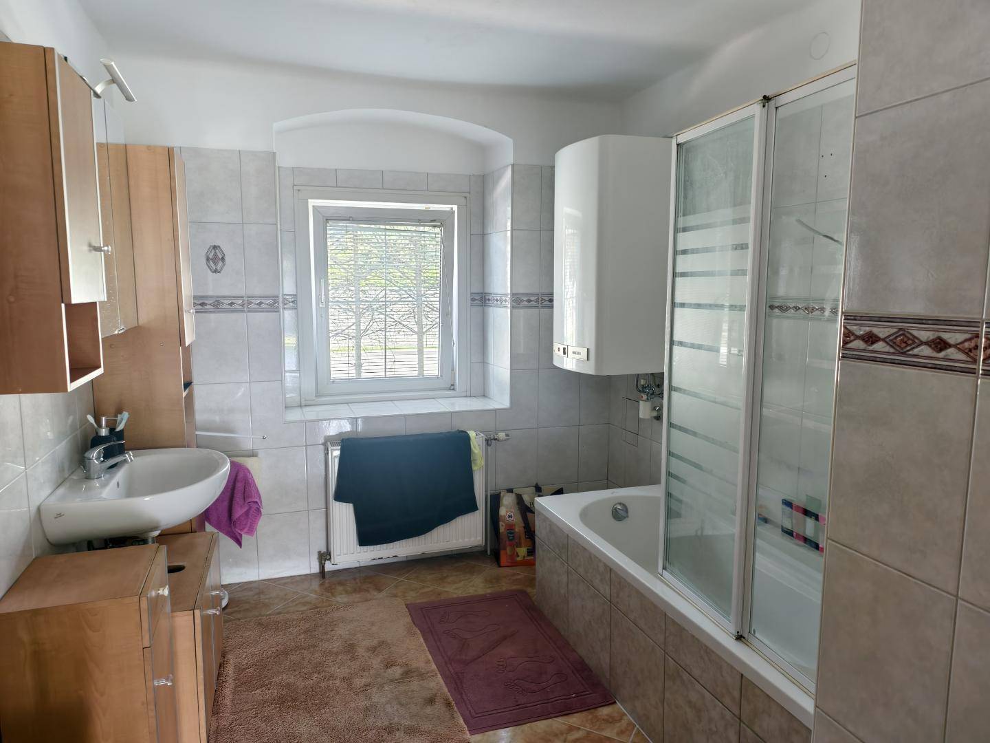 EG: Vorraum, Badezimmer (mit neuer Badewanne), WC, Schlafzimmer, Büro, Wohnzimmer, großzügige Ess-Küche