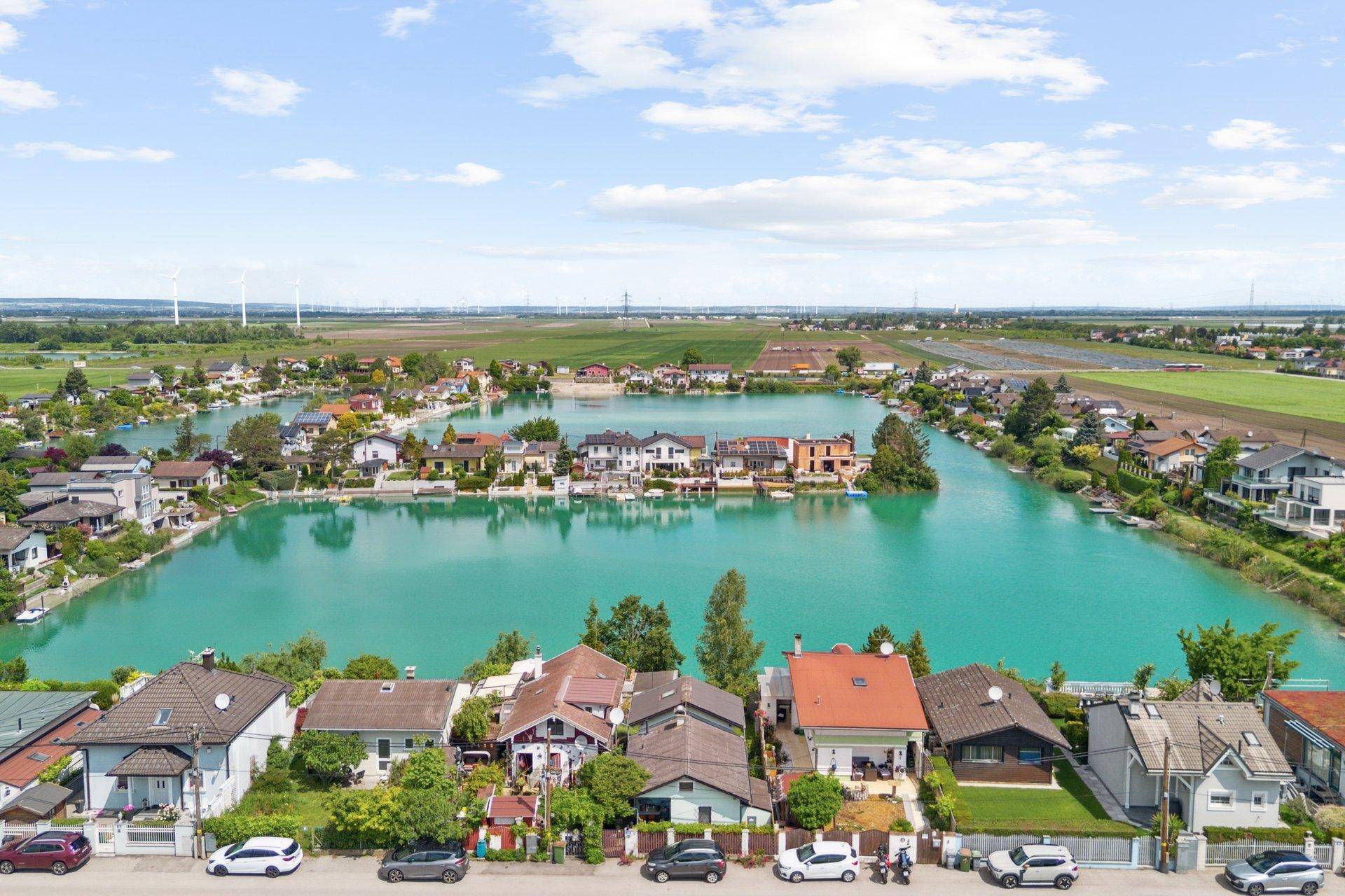 Die Liegenschaft befindet sich in absolut idyllischer Lage direkt am Ponysee – einem charmanten Rückzugsort im Grünen und dennoch hervorragend angebunden an die Wiener Stadtinfrastruktur. Umgeben von gepflegten Feldern, Gärten und einer ruhigen Nachbarschaft genießen Sie hier ein Maximum an Lebensqualität, Ruhe und Naturverbundenheit. Trotz dieser naturnahen Umgebung ist die Anbindung an das Stadtzentrum optimal: In nur ca. 8 Minuten erreichen Sie die Anschlussstelle der S2, welche direkten Zugang zur Südosttangente (A23) bietet. So gelangen Sie rasch in alle Teile Wiens und darüber hinaus. Auch öffentlich ist die Lage bestens erschlossen: Die Bushaltestelle Agrarweg der Linie 24A ist in rund 5 Gehminuten erreichbar und bringt Sie bequem zur U-Bahn sowie weiteren Verkehrsknotenpunkten. Die Kombination aus Erholung am Wasser, Freizeitmöglichkeiten in der Umgebung und rascher Erreichbarkeit urbaner Infrastruktur macht diese Lage besonders attraktiv – sei es als Hauptwohnsitz oder als privates Sommerrefugium.