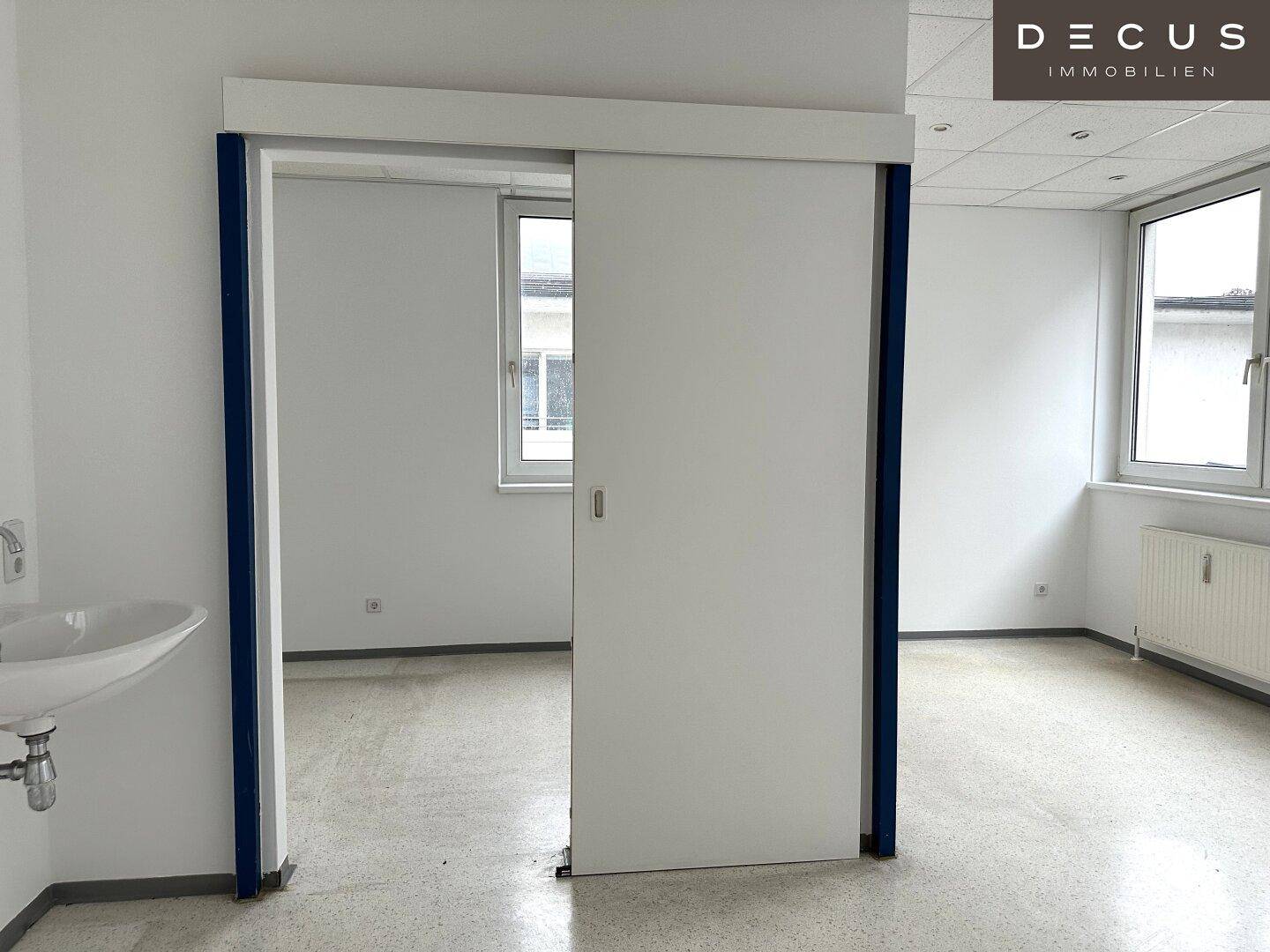 Die ca. 98 m² Fläche wurde vormals als orthopädische Ordination genutzt und bietet zentral begehbare, helle Räume im 1. Obergeschoss.