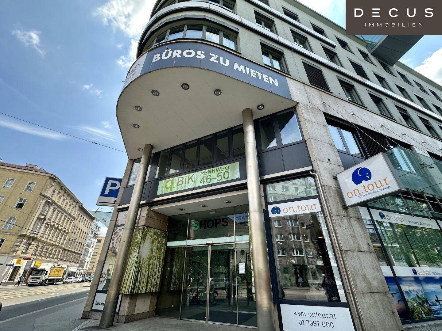 Das Büro- und Geschäftszentrum qBIK befindet sich direkt am Rennweg und verfügt über eine perfekte Verkehrsanbindung.