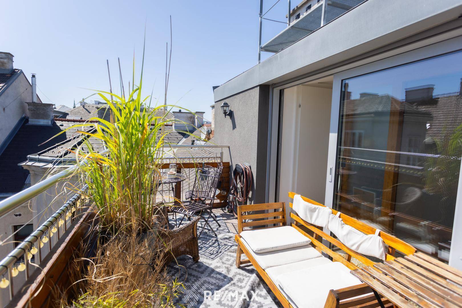 Zum Verkauf gelangt diese 4-Zimmer-Dachgeschoß-Terrassen-Maisonette auf einem Stilaltbau-Haus in unmittelbarer Nähe zur U6 Währinger Straße/Volksoper