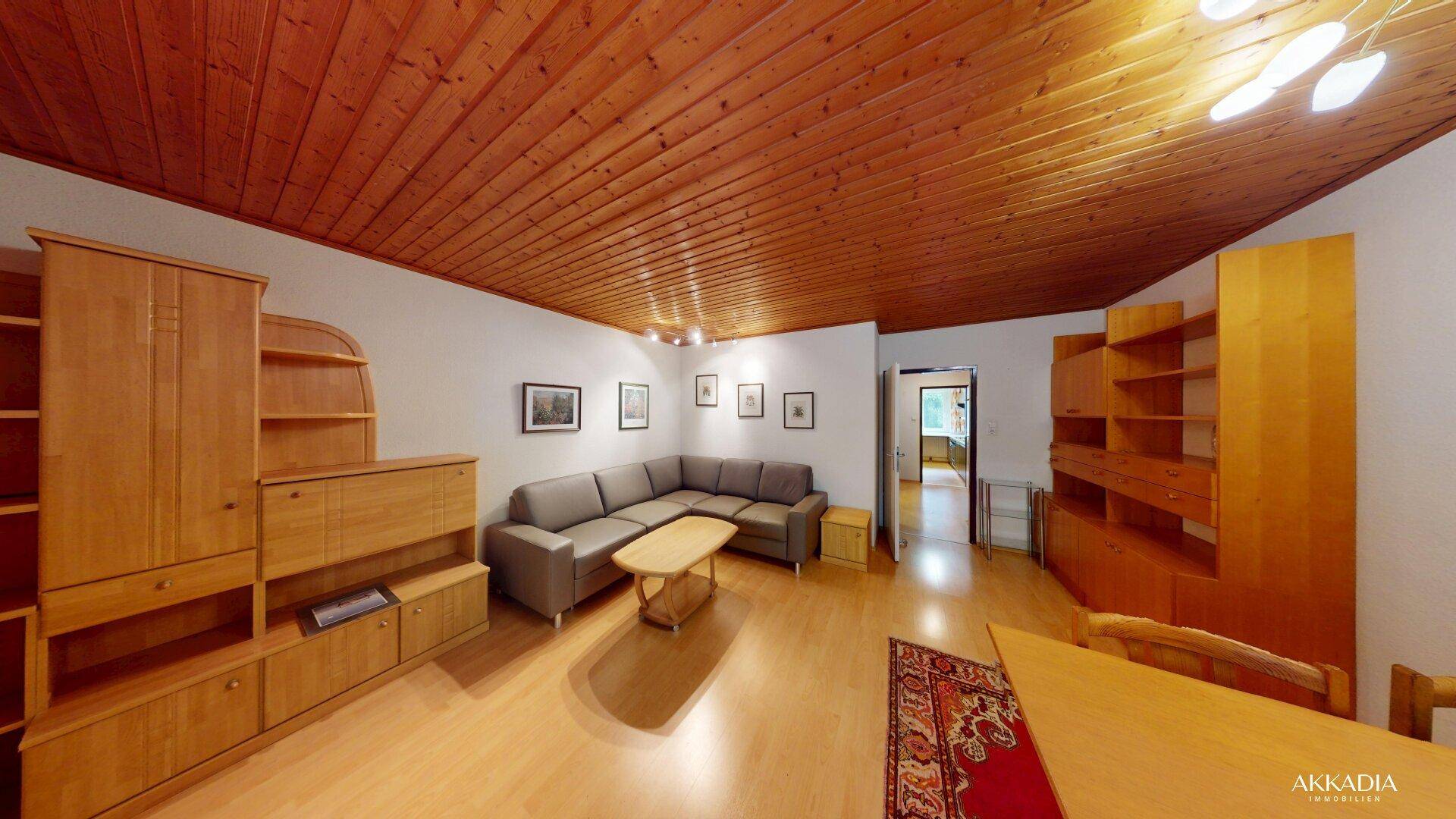 Der großzügige Wohnbereich ist lichtdurchflutet und eröffnet einen weiten Blick ins Grüne. Zwei weitere Zimmer eignen sich ideal als Schlafzimmer, Kinderzimmer oder Arbeitsraum und bieten vielfältige Nutzungsmöglichkeiten. Die Küche lässt sich funktional einrichten, das Badezimmer ist mit einer Badewanne ausgestattet. Ein separates WC sowie ein Abstellraum ergänzen das Raumangebot. Für zusätzlichen Komfort sorgen eine zentrale Heizungsanlage und moderne Fenster mit Doppelverglasung und Rollläden.