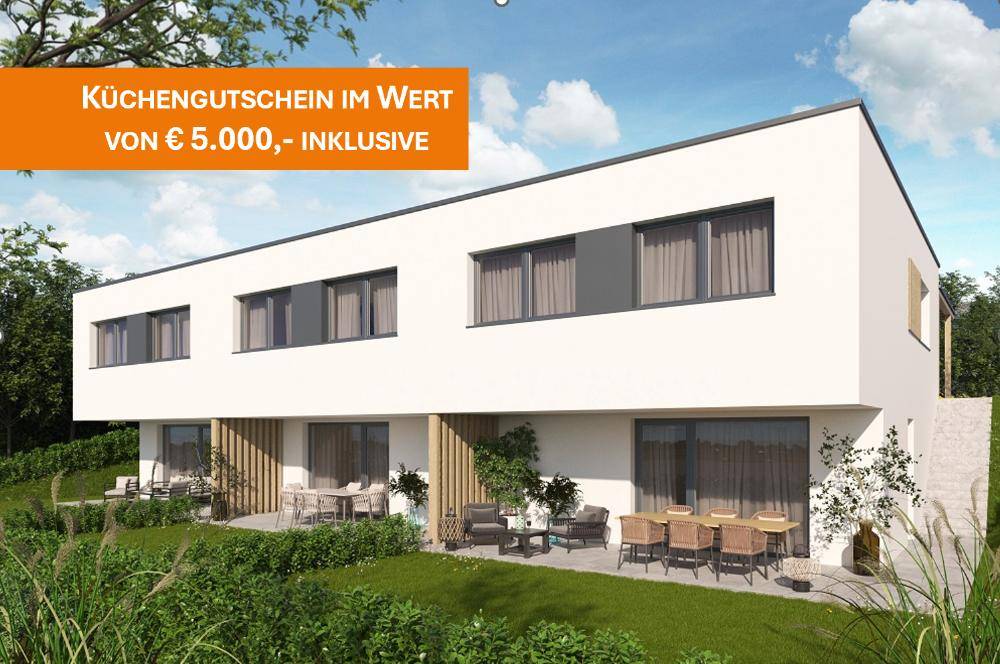 HIGHLIGHTS • Provisionsfreier Verkauf • Küchengutschein im Wert von € 5.000,00 inklusive • Günstiger Wohnbau mit unserem EDELROHBAU+ Verkaufsmodell • Je Wohneinheit Gärten mit Terrassen • Niedrigenergiestandard • 3-fach Isolierverglasung • Nachhaltige und moderne Systeme für Heizung (Luftwärmepumpe) und • Photovoltaik (der erzeugte Sonnenstrom kann von den Bewohnern verwendet werden) • In allen Reihenhäusern in den Wohn- und Schlafräumen Echtholz-Parkett • Eine Auswahl an großformatigen Qualitätsfliesen • Alle Wohnräume werden mit Fußbodenheizung und elektrischer Einzelraumregelung versehen • Hochwertige Sanitärausstattung mit Markenprodukten • Großzügiger Keller • Vorsehung eines E-Mobilitätskonzepts • Vorsehung für Beschattung - Raffstorkästen in Fassade