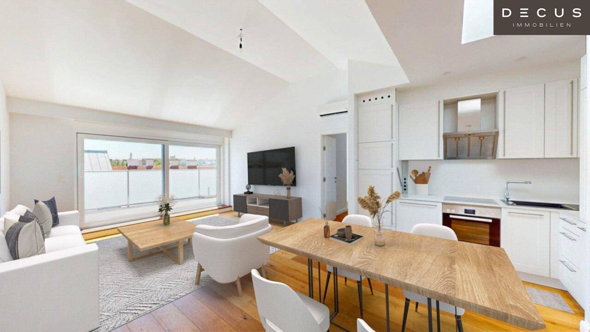 In ausgezeichneter Lage des 17. Bezirks – unweit der Ottakringer Brauerei, des Brunnenmarkts und des Yppenplatzes – befindet sich diese hochwertig ausgestattete, vollklimatisierte 3-Zimmer-Dachgeschosswohnung mit großzügiger Terrasse, Aufzug im Haus und eigenem Kellerabteil. Die gelungene Kombination aus durchdachter Raumaufteilung, moderner Haustechnik und erstklassiger Ausstattung macht dieses Objekt besonders attraktiv. Dank der südöstlichen Ausrichtung ist die Wohnung den ganzen Tag über hell und freundlich. Es gibt keine Dachschrägen, was das Raumgefühl zusätzlich hebt – unterstützt durch die hohen Decken im gesamten Wohnbereich. Alle Fenster sind mit elektrischen, außenliegenden Jalousien (Rollläden) ausgestattet, die sowohl für effektiven Sonnenschutz als auch für vollständige Verdunkelung sorgen.