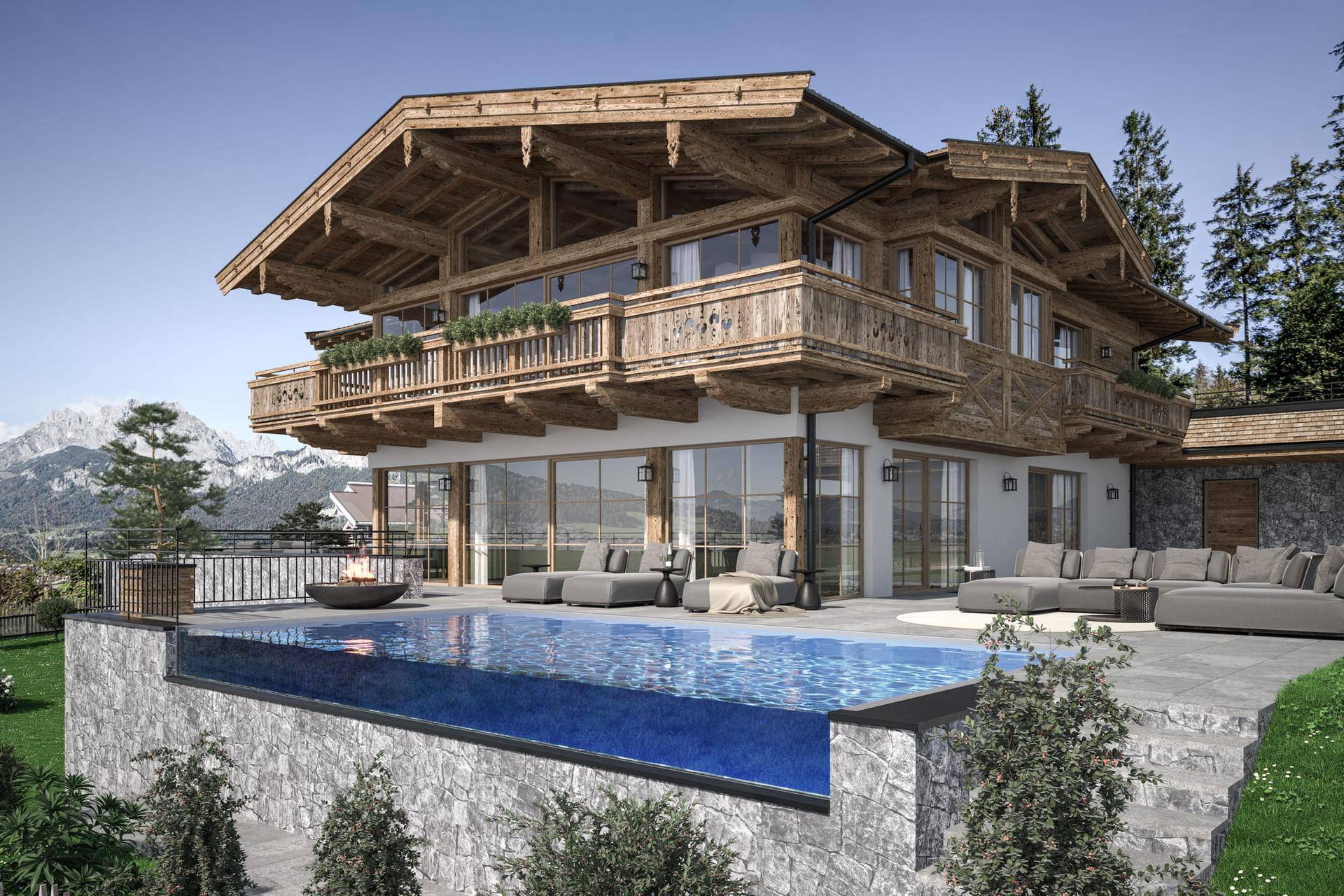Neubauchalet in bester Lage, ca. 415m² Wohnnutzfläche, Garage für bis zu vier Fahrzeugen, Beheizung mittels Erdwärme, Aufzug, vier/fünf Schlafzimmer und Badezimmer, Weinkeller, Wellnessbereich, hochwertige Ausstattung, Altholz, offener Kamin, Pool, unverbaubare Lage, die Immobilie wird schlüsselfertig übergeben, HWB in Arbeit;