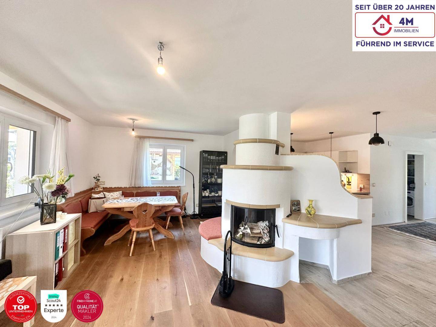 Der gemütliche Kachelofen sorgt in der Winterzeit für wohlige Wärme und ein behagliches Wohngefühl im gesamten Haus.