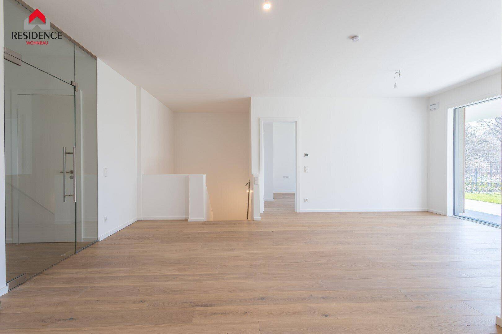 Diese Wohnung erstreckt sich über zwei Etagen und bietet auf ca. 106 m2 Gesamtfläche modernen Qualitätswohnraum für gehobene Ansprüche. Im Erdgeschoss befinden sich neben den Sanitärräumen auch ein Schlafzimmer und der ca. 35 m2 große Wohn/Ess/Kochbereich. Große Fenster erhellen die Wohnräume mit reichlich Tageslicht und sorgen zusammen mit einer Raumhöhe von 2,81 m für eine freundliche Wohnatmosphäre. Zur Wohnung gehört eine ca. 25 m2 große Terrasse und ein ca. 110 m2 großer Garten – viel Freiraum für die ganze Familie. Im Untergeschoss sind ein Kellerraum, Sanitärraum, Fitnessraum und Hobbyraum angelegt. Durch den Lichthof kommt man auch hier in den Genuss von Tageslicht bei einer Raumhöhe von 2,60m. Dieses innovative Wohnkonzept überzeugt auf allen Ebenen mit attraktiver Architektur, perfekter Raumaufteilung und höchstem Wohnkomfort. Der Wohnung ist ein doppelter Tiefgaragenstellplatz um € 50.000,- zugeteilt.