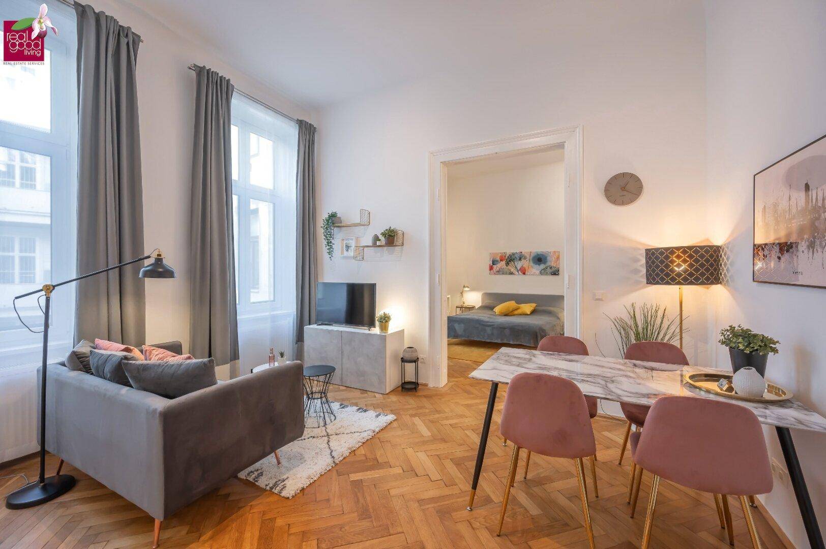 Zum Verkauf steht diese charmante, hofseitig gelegene Altbauwohnung in einem prachtvollen, gepflegten Gebäude im Herzen der Wiener Innenstadt. Die südseitig ausgerichtete Wohnung bietet auf ca. 64,4 m² Wohnfläche: