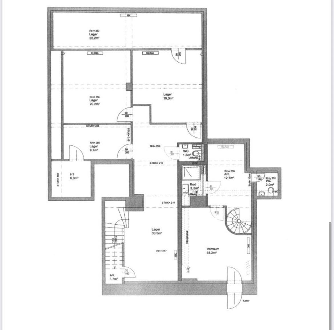 Untergeschoss (Souterrain): ca. 175 m² – vielseitig nutzbar, z. B. als Lager, Studio, Praxis oder Erweiterungsfläche