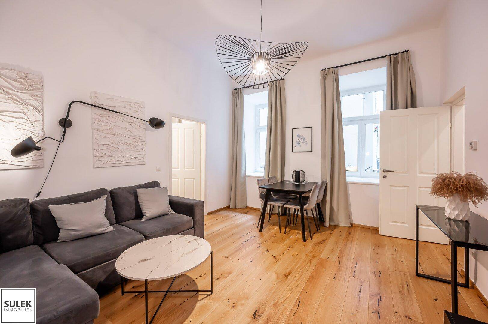 Die Wohnung wurde kürzlich frisch weiß ausgemalt. Im Zuge einer Sanierung im Jahr 2022 wurden die Böden neu verlegt, eine Fußbodenheizung installiert und die Fenster getauscht (Dreifachverglasung).
