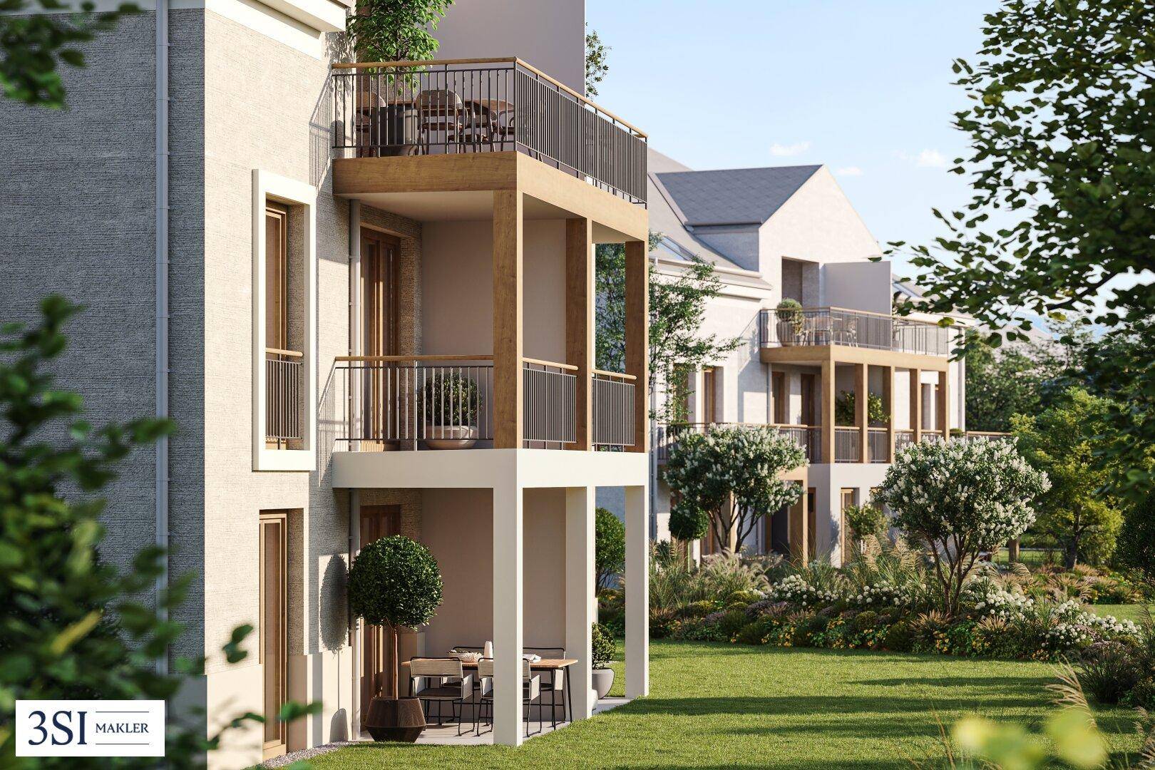 Auf zwei elegante Stadtvillen teilen sich insgesamt 16 Luxus-Eigentumswohnungen auf, jeweils mit einladenden Freiflächen wie Gärten, Balkone oder Terrassen, auf.