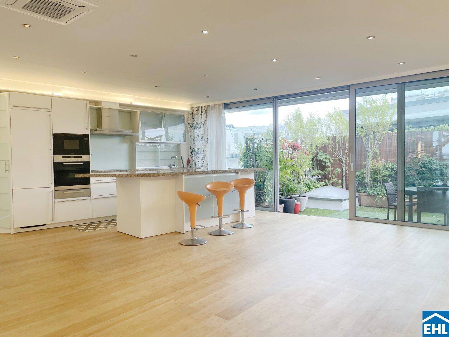Dieses Penthouse im Dachgeschoss eines Gründerzeithauses im beliebten 4. Bezirk Wiens bietet einen wundervollen Blick über die Dächer der Stadt. Der Grundriss ist intelligent gestaltet: Die Wohnebene mit Terrasse, Balkon und Ausblick über Wien befindet sich im oberen Geschoss, die Schlafräume mit den Badezimmern en suite im unteren Geschoss. Der krönende Abschluss ist die Dachterrasse, die noch ein Geschoss über dem Wohnraum liegt und somit eine uneinsehbare Sonnenterrasse mit Weitblick über Wien bildet.