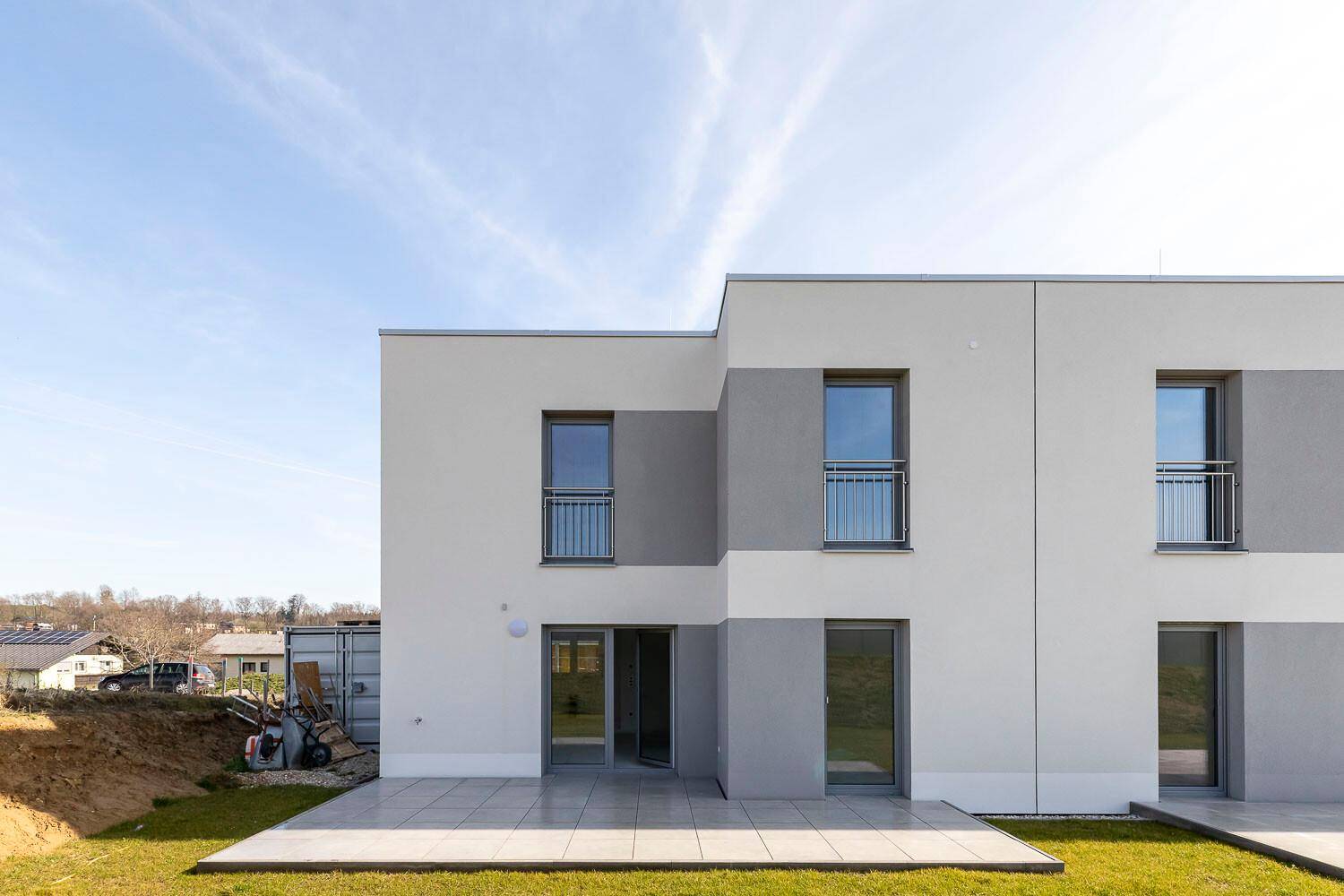 In Niederthalheim wurde dieses neuwertige Eckreihenhaus in solider Holzriegelbauweise errichtet.