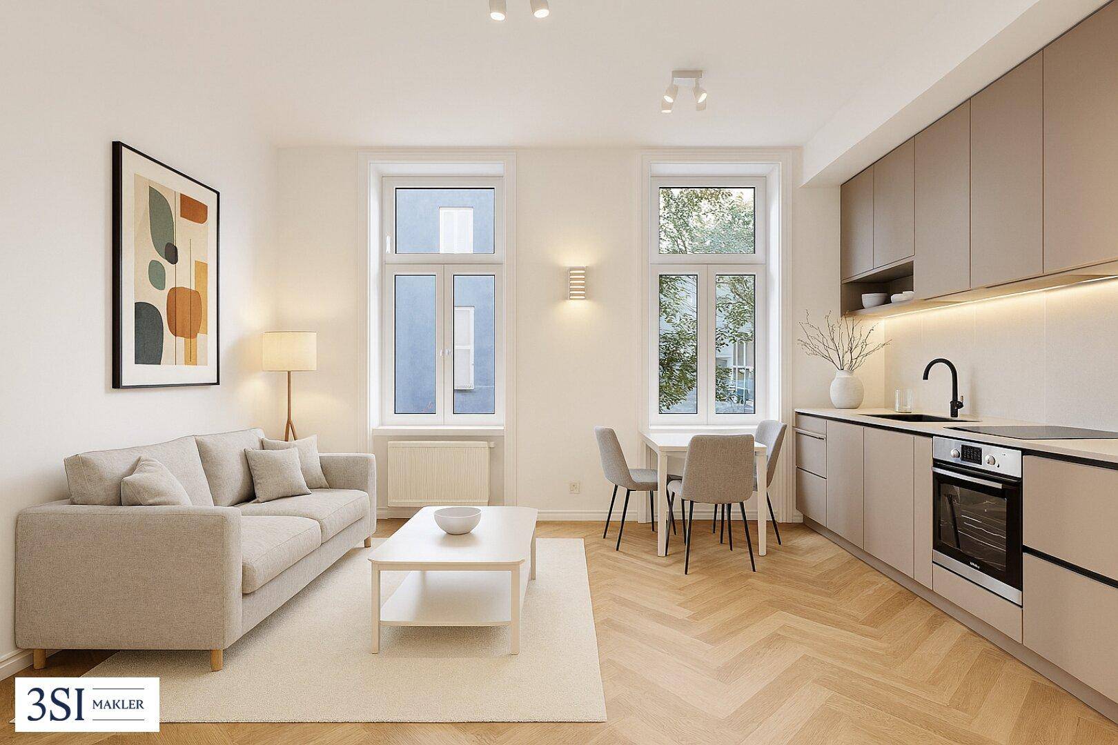 Diese liebevoll sanierte 1-Zimmer-Wohnung im 2. Obergeschoß (Lift ist vorhanden) eines klassischen Wiener Altbaus verbindet zeitlose Eleganz mit moderner Ausstattung. Die rund 30 m² große Garçonnière wurde umfassend renoviert und präsentiert sich im Erstbezug – perfekt für Singles oder Pärchen.