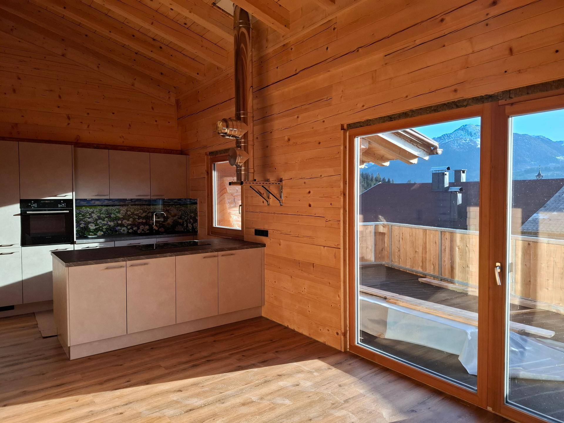 • Zweiter Stock (Aufzug) • Ausrichtung nach Westen mit teil-überdachter Terrasse • Ausblick auf das Kitzbühler Horn • Einbauküche vorhanden • Bad teilmöbliert • Fußboden teils Parkett • Wirtschaftsraum / Speisekammer und große Garderobe • Hohe Räume (luftige Dachgeschoßwohnung)