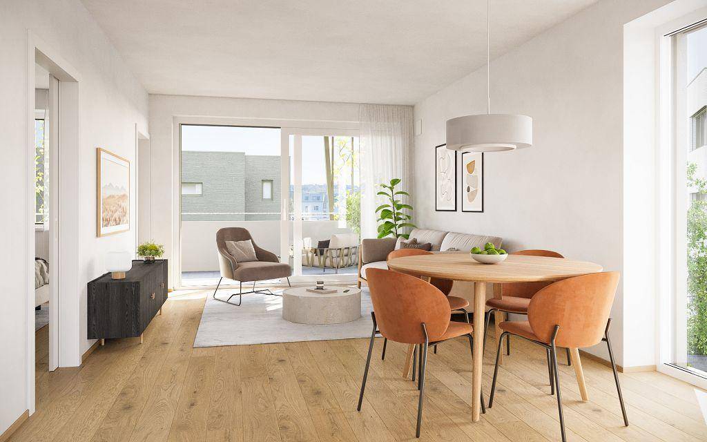 Mehrere Kinderspielplätze und Freibereichszonen sind im Baukonzept berücksichtigt und sorgen für eine gute Aufenthaltsqualität. Die 1-5-Zimmer-Wohneinheiten verfügen außerdem über vielfältige Freibereiche in Form von Gärten, Balkonen und Terrassen.