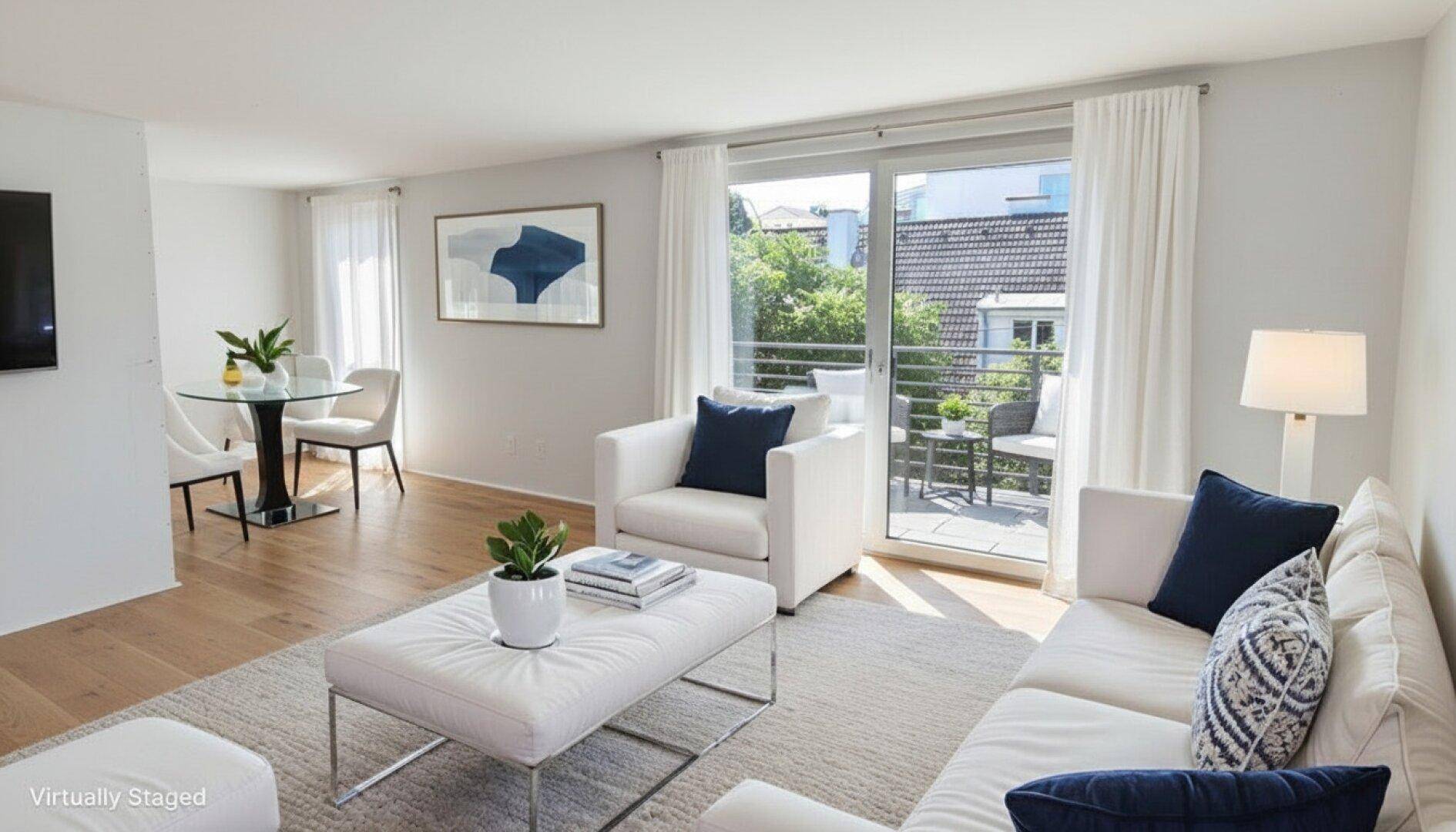 Der Wohnbereich besticht durch hochwertige Parkettböden und eine angenehme Fußbodenheizung, die für wohlige Wärme sorgt. Von hier aus gelangen Sie auf den einladenden Balkon, der sich perfekt für entspannte Stunden im Freien eignet – sei es zum Frühstück mit Blick ins Grüne oder zum Ausklang des Tages.