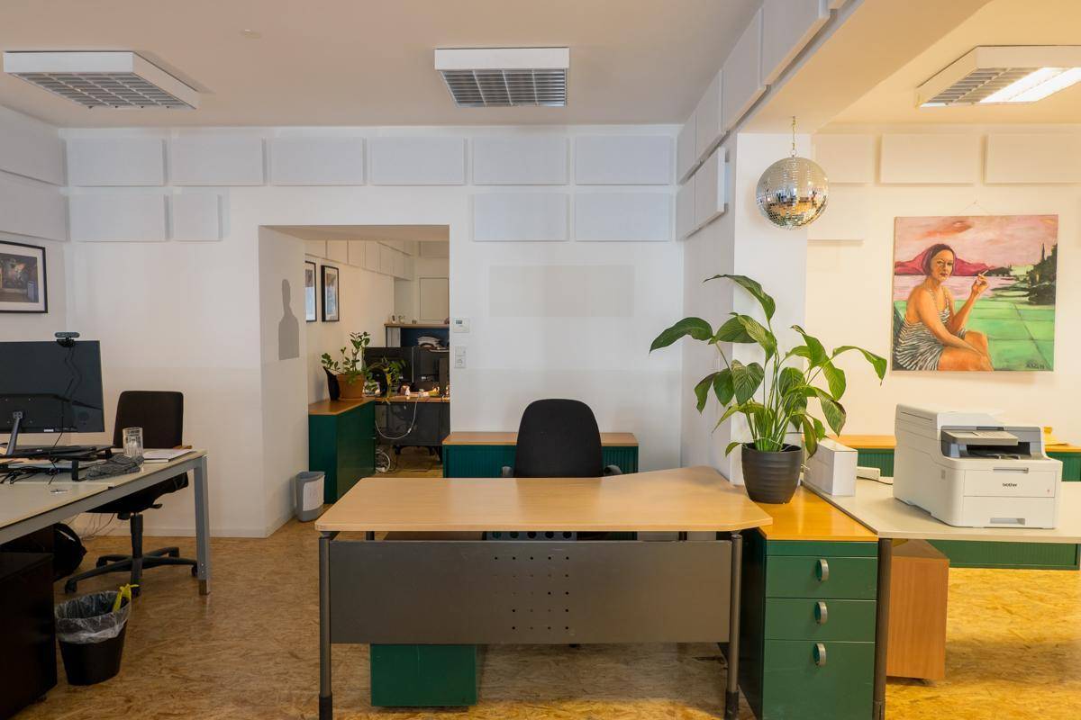 Räumlichkeiten: – Zugang 24/7 – eigener Eingangsbereich von der Straße – zwei Arbeitsräume für 10 Arbeitsplätze – Besprechungsraum mit Beamer und Flipchart – Küche, voll ausgestattet (Kaffeemaschine, Herd, Kühlschrank, Spülmaschine usw.) – Bad mit WC, Waschbecken und Dusche – schöner Innenhof mit Laube und Hochbeete