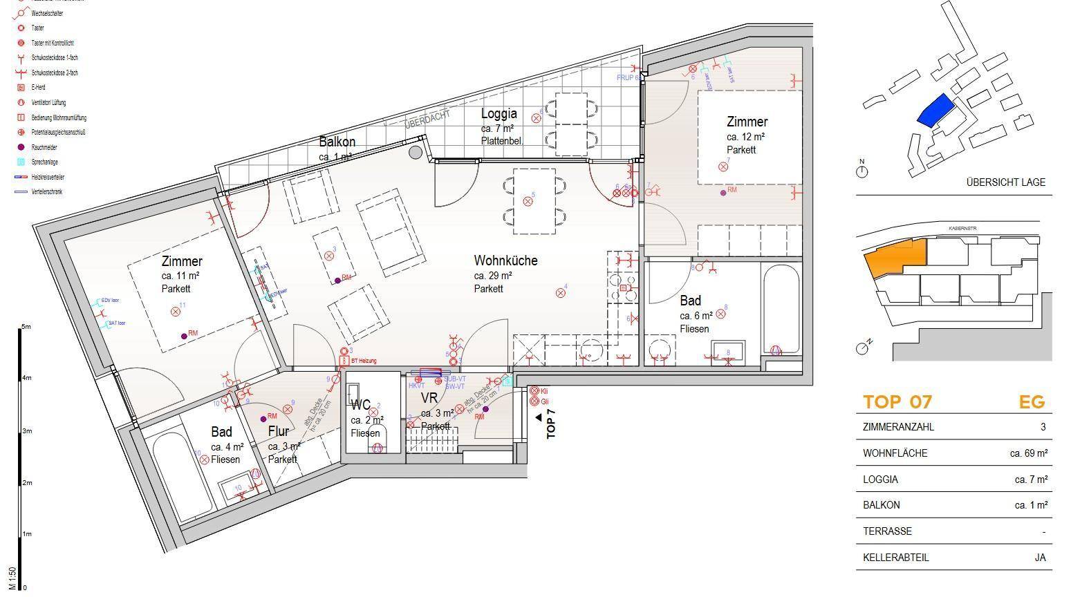Brandneue 3-Zimmer-Wohnung mit 68,74 m² Wohnfläche in 3500 Krems an der Donau. Die Wohnung ist leer, sofort verfügbar und kann für 3 oder 5 Jahre gemietet werden. Die monatlichen Gesamtkosten betragen 1340,72 € inklusive 340,72 € Betriebskosten (inkl. Heizung). Als Kaution sind 3 Brutto Monatsmieten zu hinterlegen. Die Wohnung verfügt über 3 Zimmer und 2 Badezimmer und eine Loggia mit 8 m² Fläche. Zur Ausstattung gehören eine Einbauküche (Geschirrspüler, Kühlschrank), Fußbodenheizung mit Fernwärme aus Heizwerk (erneuerbar), Klimaanlage, Badewanne und Parkettboden. Zusätzlich stehen ein Kellerabteil, ein Aufzug sowie zwei Tiefgaragenstellplätze zur Verfügung.