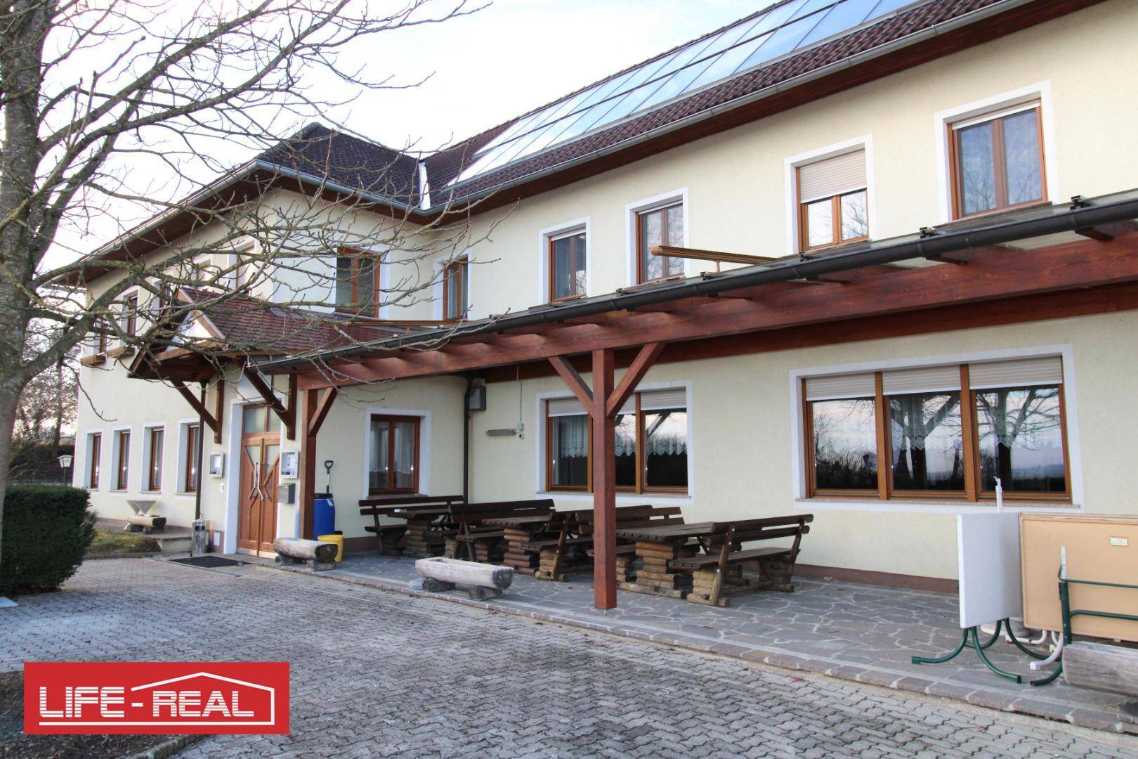 Großzügiges Gasthaus mit einer Innenfläche von ca. 265 Quadratmetern sowie bei Bedarf einem Festsaal mit zusätzlichen 185 Quadratmetern. Ergänzend stehen optional Zimmer für Mitarbeiter oder zur Vermietung zur Verfügung. Am Objekt befinden sich zudem zwei Eisstockbahnen, die mit betrieben werden könnten.
