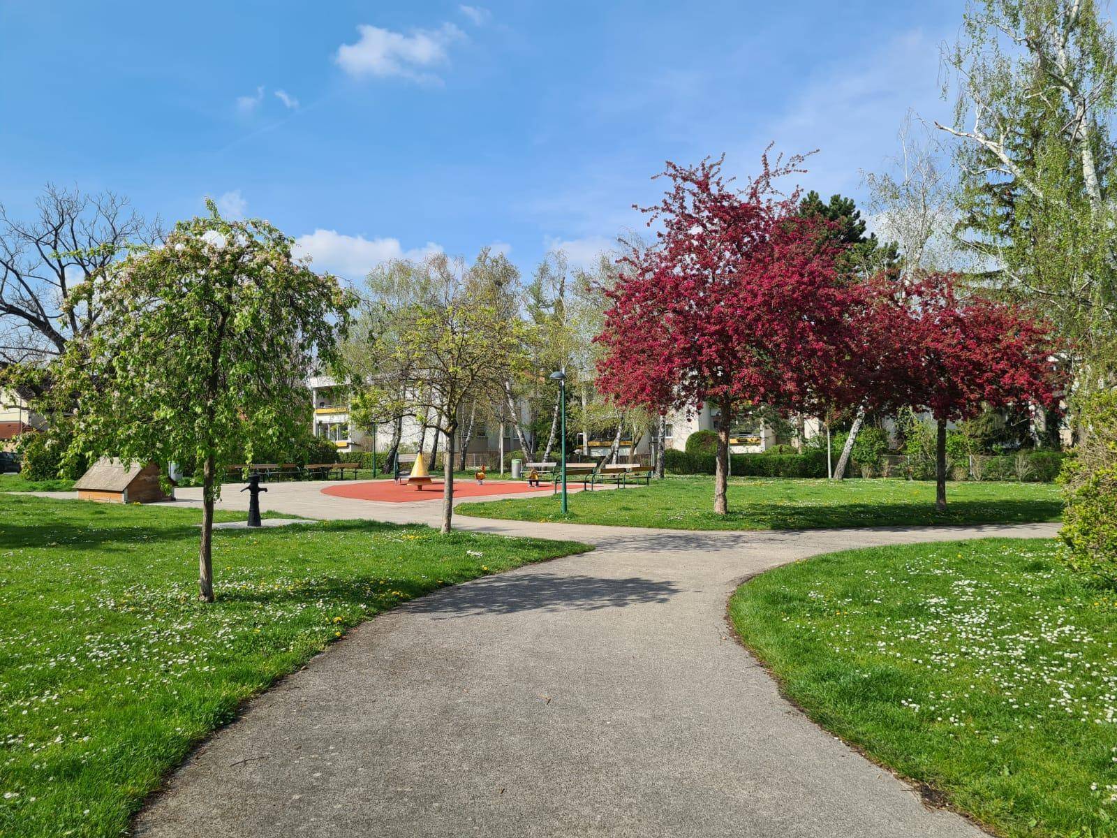 Direkt vor der Wohnhausanlage befindet sich ein großer öffentlicher Park, auf dem sich ebenfalls ein Kinderspielplatz befindet. Bis zum Eingang in den Wienerwald (Hörndlwald) sind es ca. 700m, bis zum Tor des Lainzer Tiergartens (Lainzer Teich) ca. 1,5 km
