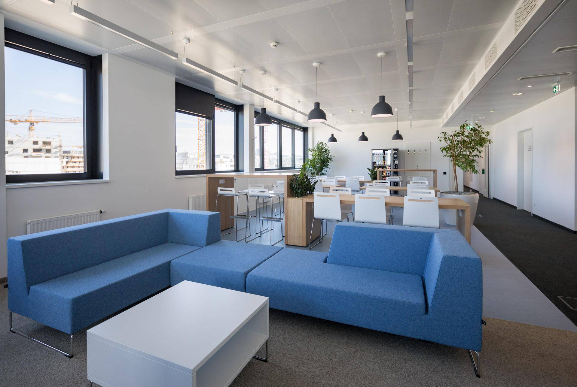 Lounge/Kommunikationszone und Bistro LED-Pendelleuchten mit Bewegungspräsenzfühler mit Tageslichtregelung Personenaufzüge Flexible Wände (eingeschränkt) Sonnenschutz außen - zentrale und manuelle Steuerung Konditionierte Luft (temperiert und befeuchtet) Blendschutz innen - manuell Kühldecke; mechanische Be- und Entlüftung Strukturierte Verkabelung optional Öffenbare Fenster Doppelboden bzw. Hohlraumboden Raumhöhe 2,90 m Fahrradabstellplätze Moderne Möblierung (optional) Gekühlter Serverraum ÖGNI Gold Zertifizierung
