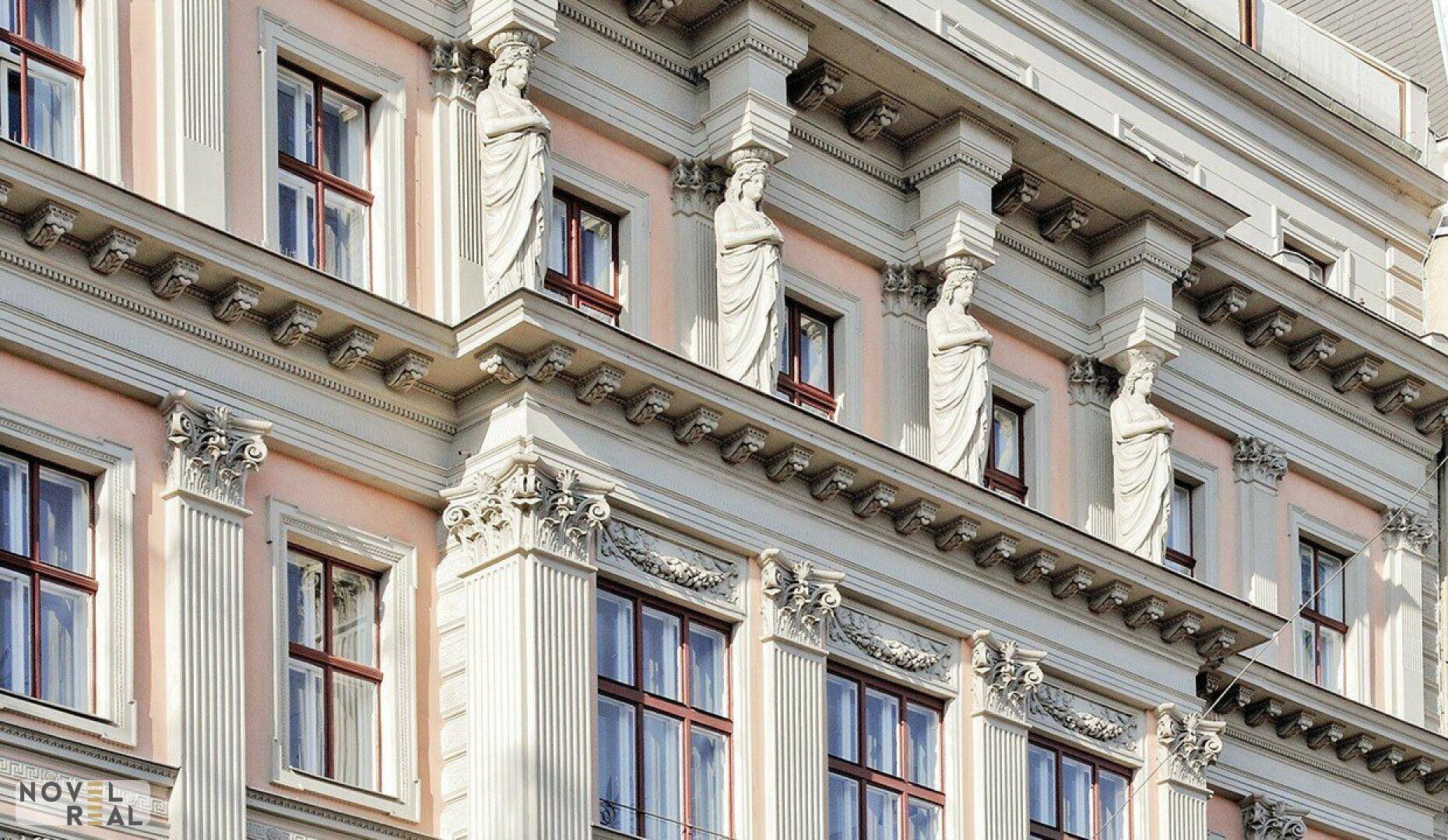 Das historische Geschäftshaus im 9. Wiener Gemeindebezirk wurde in der Hochblüte der Gründerzeit um 1870 erbaut und beeindruckt mit zwei aufwändig gegliederten Fassadenfronten mit kunstvollen Elementen.