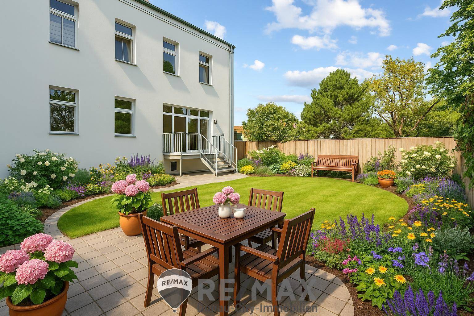 Sie wachen auf, treten barfuß auf Ihre sonnige Terrasse, genießen den ersten Kaffee im eigenen Garten und atmen tief durch –