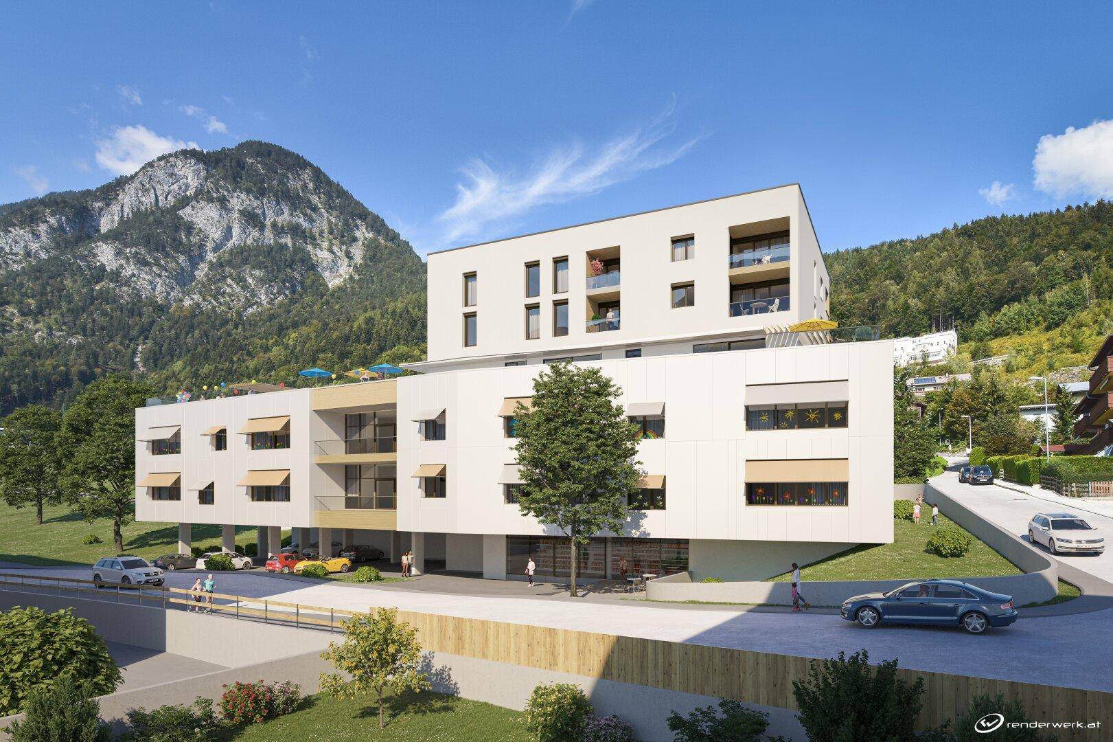 Bei der Planung der neuen Tratzbergsiedlung wurde besonderer Wert auf eine angenehme Umgebung gelegt. Die erste Baustufe startet mit einem Wohngebäude mit 32 Wohnungen sowie einem Multifunktionsgebäude mit zwei Gewerbeeinheiten und darüber liegenden Kinderbetreuungseinrichtungen und geförderte Wohnungen an der Tratzbergstraße.