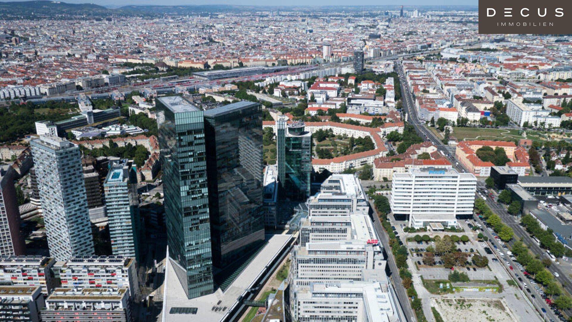 Sehen und gesehen werden: Der Business Park Vienna mit den markanten myhive Twin Towers prägt das Stadtbild und bietet einen einzigartigen Rundblick über Wien.