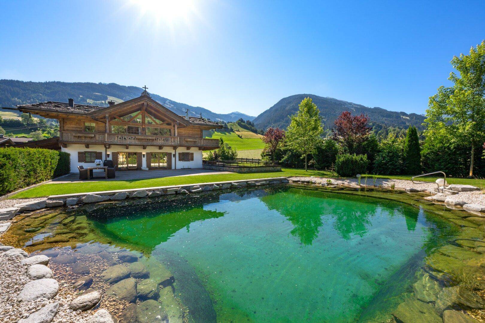 Dieses prachtvolle Landhaus ist Richtung Süden flankiert von saftigem Weideland, der unverbaubare Blick reicht vom Kitzbüheler Horn über den Wilden Kaiser und die Grasberge hinweg bis zu den Südbergen. Unzählige Wander- und Mountainbikewege starten vor der Haustüre, über die romantische Giggling-Schiabfahrt kommt man unweit vom Haus ins Tal. Ganztags Sonne und Ruhe prägen das Leben an diesem besonderen Platz.