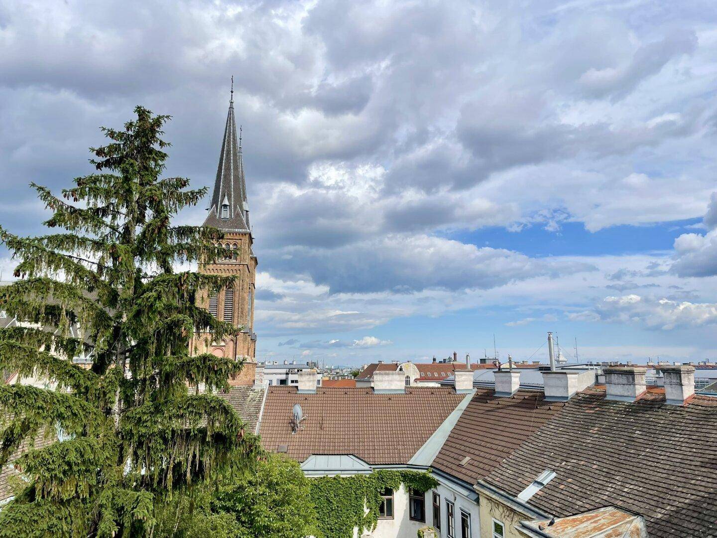 Ein besonderer Blickfang ist die Aussicht auf die Kirche am Familienplatz, die dem zukünftigen Wohnprojekt zusätzlichen Charme verleiht.