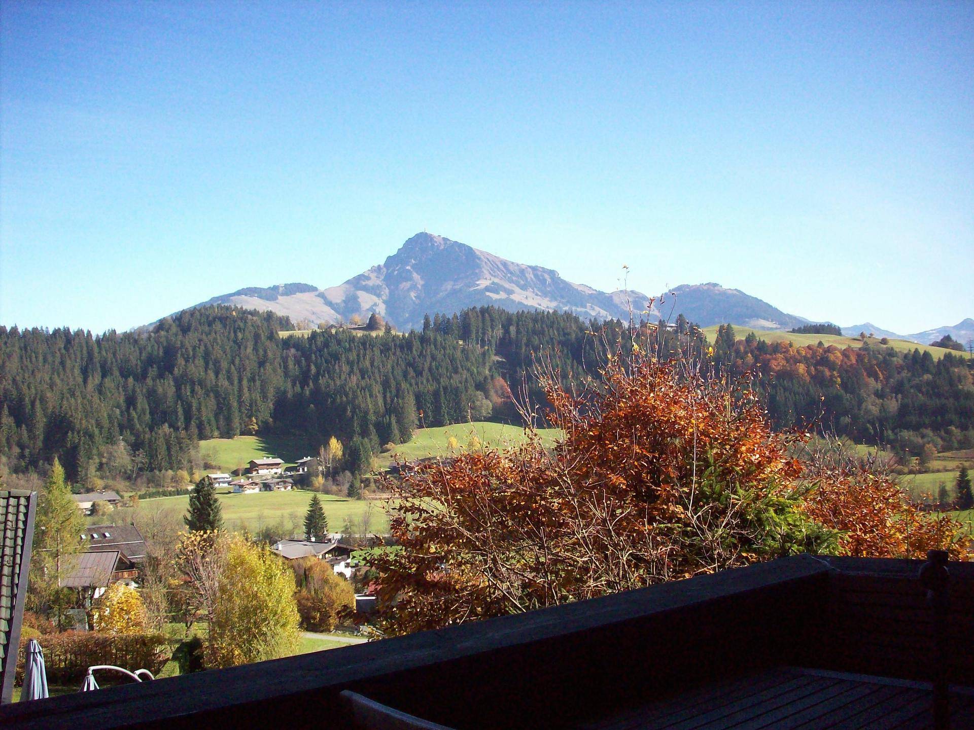 Aussicht von links nach rechts: Niederkaiser, Loferer Steinberge, Kitzbüheler Horn, Kitzbüheler / Jochberger Alpen, Hahnenkamm.