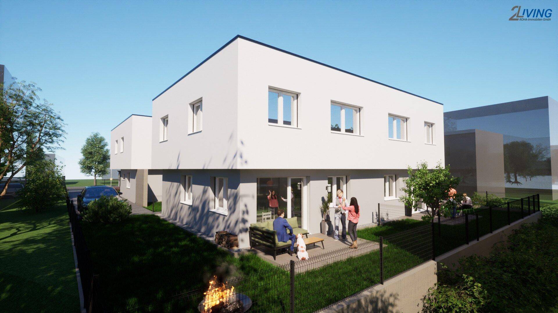 Das Projekt: Hier entstehen zwei Doppelhäuser mit vier Wohneinheiten in hochwertiger Ziegelmassivbauweise. Jede Einheit erstreckt sich über ein Erdgeschoss und ein Obergeschoss und verfügt über einen privaten Garten sowie einen KFZ-Stellplatz. Die nachhaltige und ökologische Bauweise mit einem 38 cm gedämmten Ziegelmauerwerk und einer Edelputzfassade sorgt für ein perfektes Wohnklima.