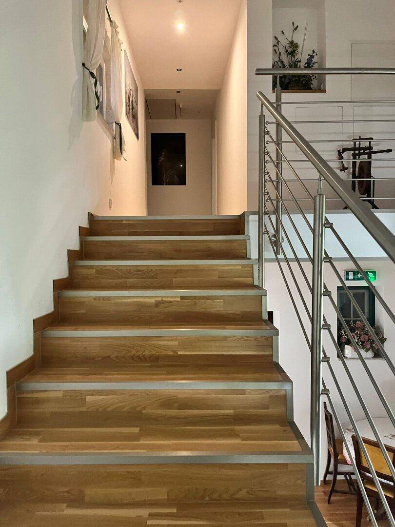 Die Wohnung liegt im Dachgeschoss eines Mehrparteienhauses und gliedert sich in: