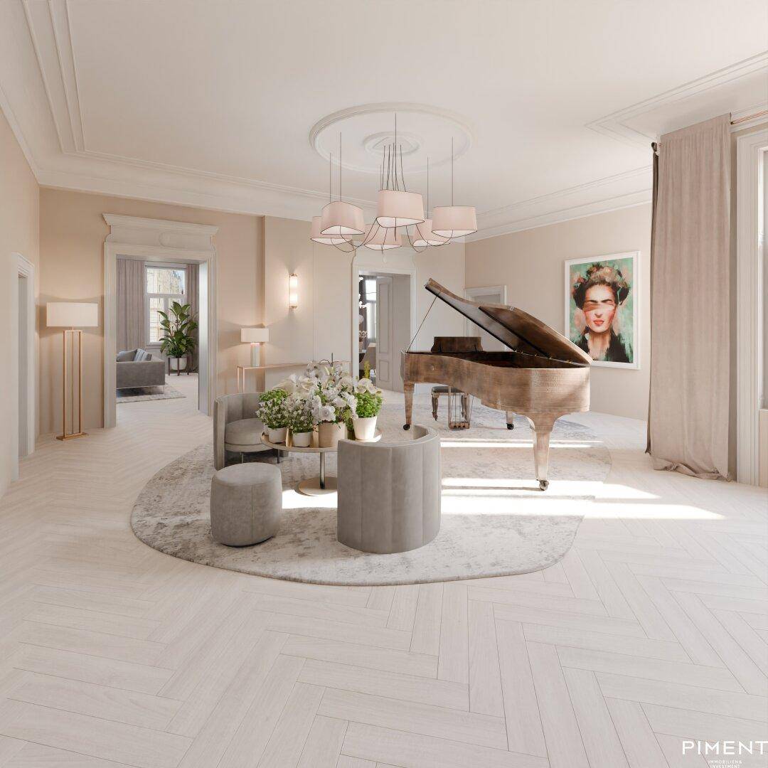 In der Wohneinheit Top 8 im 1. Stock mit Blick auf den Judenplatz und Wipplingerstraße entfaltet sich auf rund 370 m2 ein architektonisches Konzept, das Raum, Eleganz und Individualität perfekt verbindet.