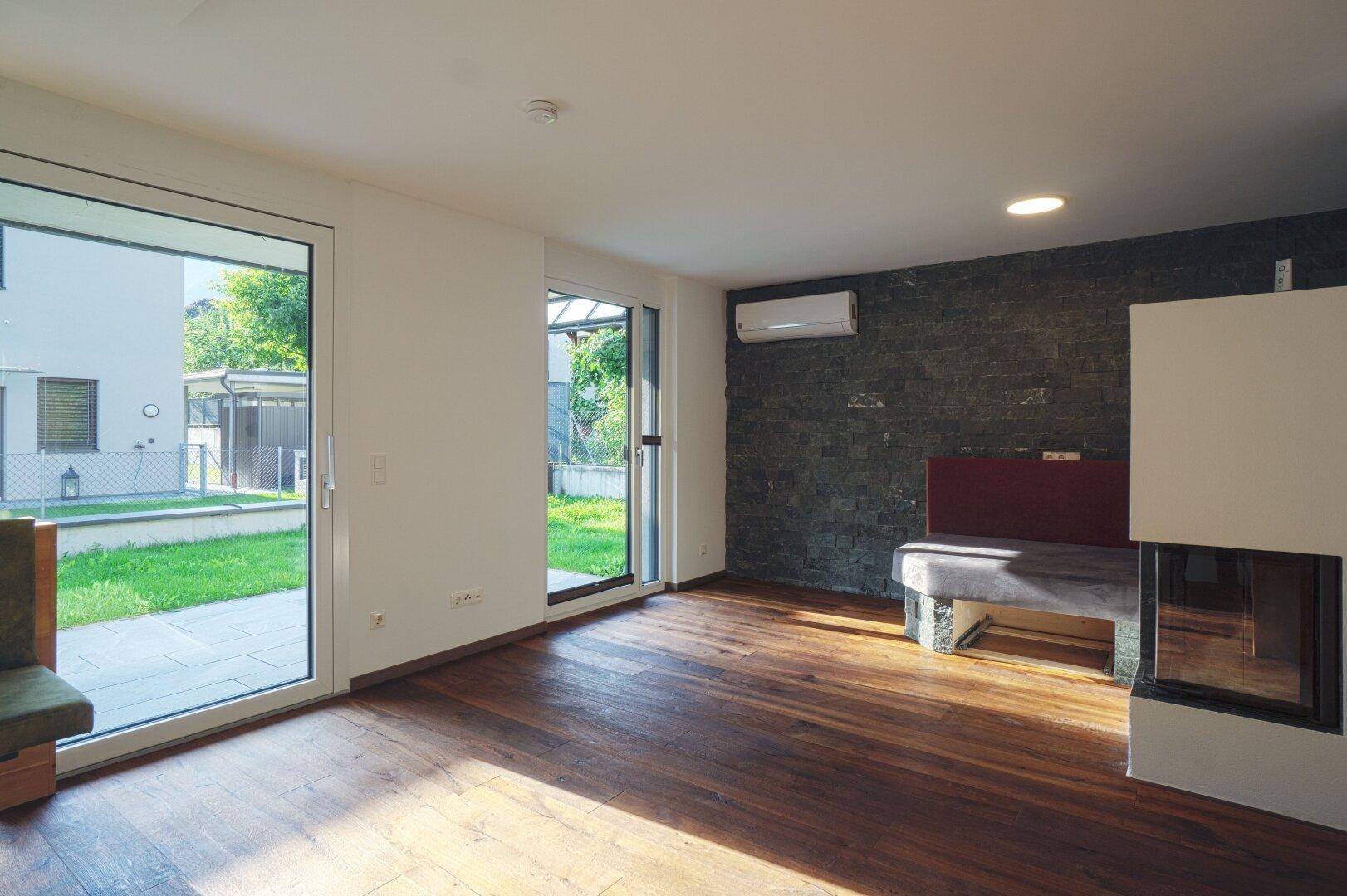 Besonders reizvoll sind die beiden großzügigen Gärten, die morgens wie abends Sonne versprechen, und die hochwertige Ausstattung mit Parkettboden, Stein-Arbeitsplatte, Klimaanlage und Fußbodenheizung.