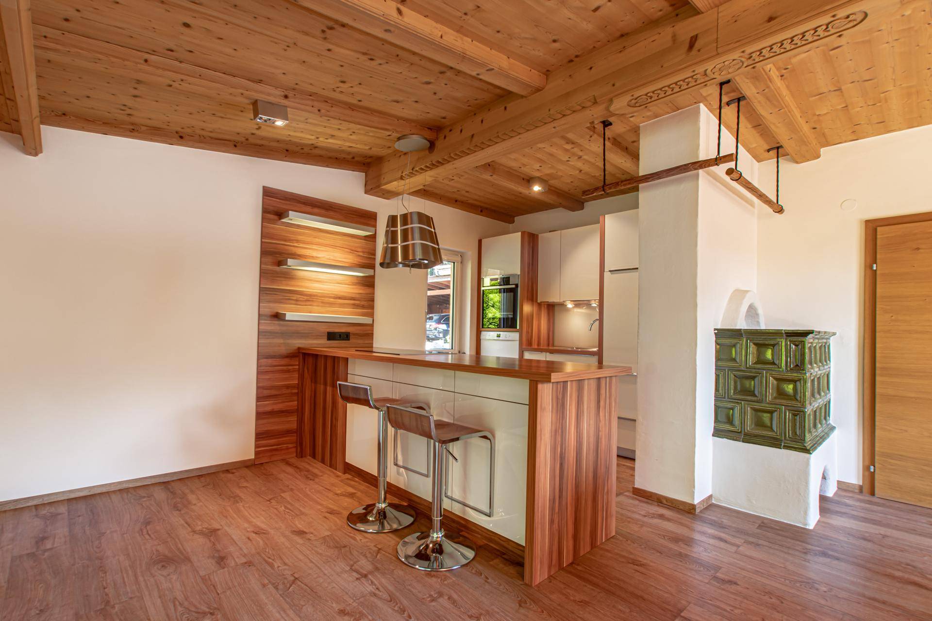 Diese gemütliche Doppelhaushälfte überzeugt durch ihre sonnige Lage in Ellmau und einen durchdachten Grundriss. Im Obergeschoss befindet sich der helle Wohn- und Essbereich mit moderner Küche und traditionellem Kachelofen. Direkt angrenzend liegt das Wohnzimmer mit freistehendem Kamin – der perfekte Ort für entspannte Stunden mit Blick auf die umliegende Bergwelt. Ergänzt wird diese Ebene durch ein Badezimmer und einen Flur, der den Zugang zu den einzelnen Bereichen harmonisch verbindet.