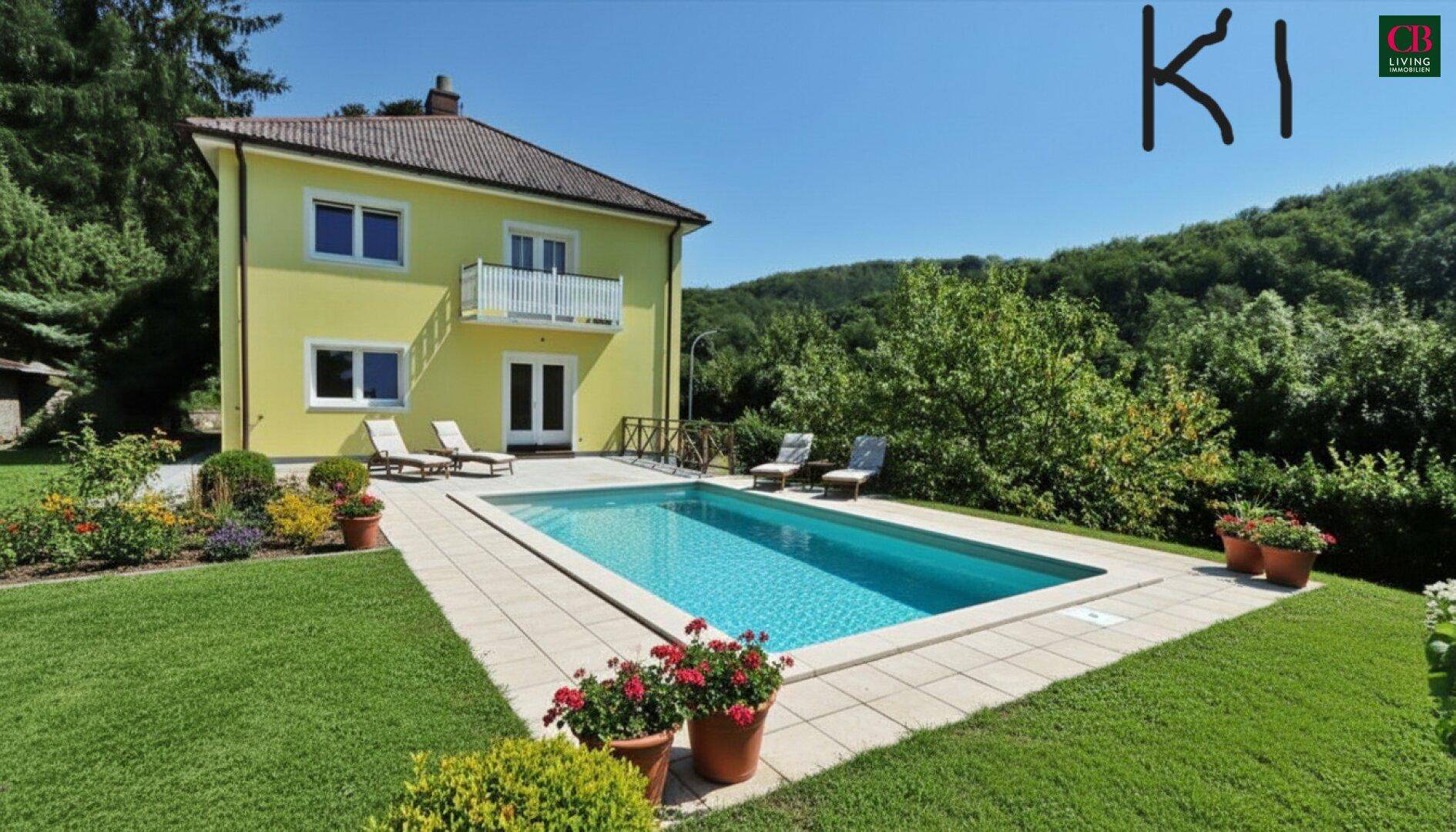 Dieses interessante, sonnendurchflutete Einfamilienhaus liegt am Waldrand in Weidling und bietet neben seinem traumhaften, weitgehend ebenen, sehr liebevoll angelegten, sonnigen Garten mit schönem Altbaumbestand einen großen Pool mit Sonne bis zum Abend.