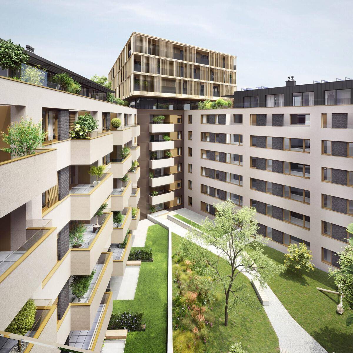 У міській локації, менш ніж за п’ять хвилин від Головного вокзалу, зводиться сучасний житловий будинок із 80 вільно фінансованими власними квартирами площею від 29 м² до 180 м². Усі квартири мають відкриті простори – приватні сади, балкони та тераси, що створює додаткову цінність. При оздобленні особлива увага приділяється індивідуальності: можна обрати між трьома різними лініями дизайну та чотирма варіантами паркетної підлоги. Також технічне оснащення відповідає новітнім стандартам: опалення й охолодження здійснюється за допомогою активації будівельних елементів (перекриттів), а завдяки Smart-Home системі можна керувати сонцезахистом та освітленням у кімнатах, а також додатковими функціями за бажанням покупця. Різноманітно облаштовані дитячі та молодіжні майданчики у внутрішніх та зовнішніх зонах забезпечують ігри та розваги безпосередньо в межах проєкту. Завершення будівництва заплановано на кінець літа 2025 року. • Three modern design furnishing variants • Four parquet flooring options by Weitzer • Component activation in a change-over system for heating and cooling (floor slabs) • Outdoor spaces with high-quality thermo-ash • Frost-proof water tap in outdoor areas • Wood-aluminum windows and doors • Electrically operated external sun protection • Smart Home solution (sun protection, room lighting), provision for various additional services • IT media providers: Magenta, A1 Telekom, Wien Energie • Preparation for alarm system • 120 underground parking spaces • Option to purchase storage areas